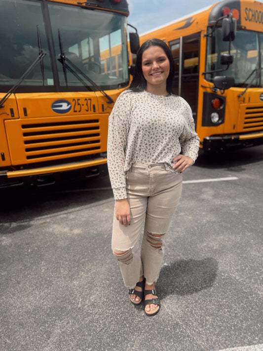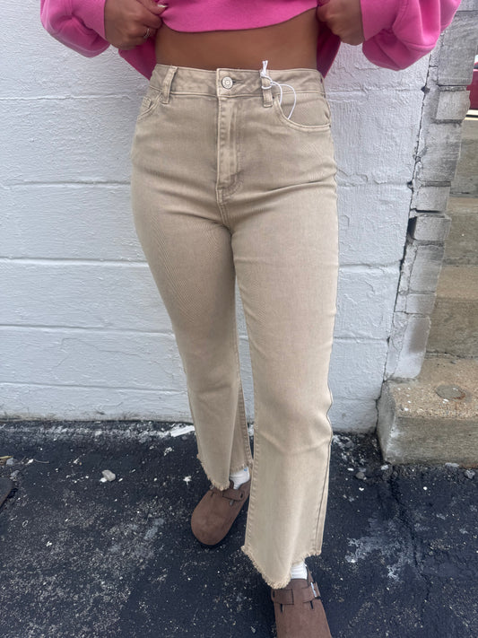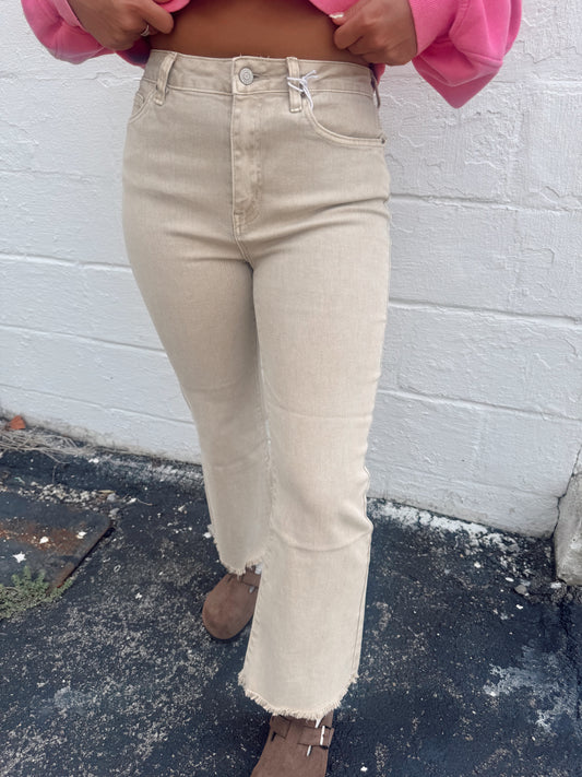 Becky Acid Wash Denim Cropped Jeans - Sand Beige