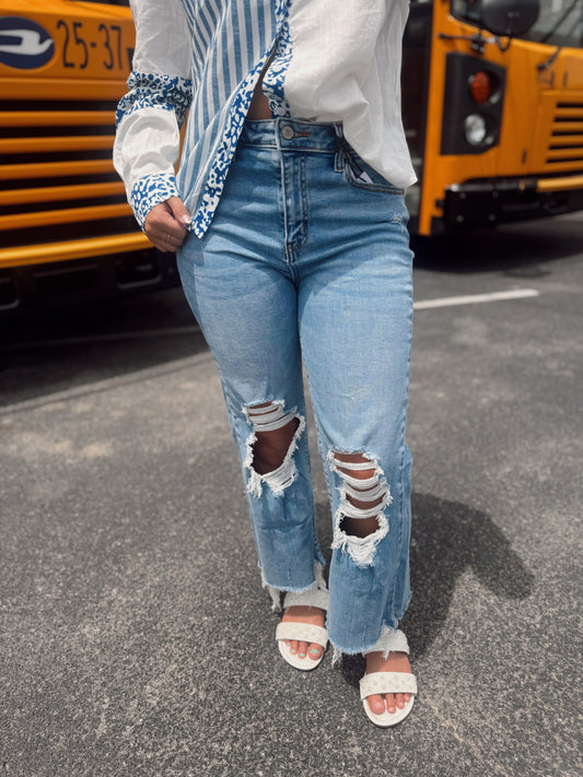 Michelle Cropped Distressed Flares