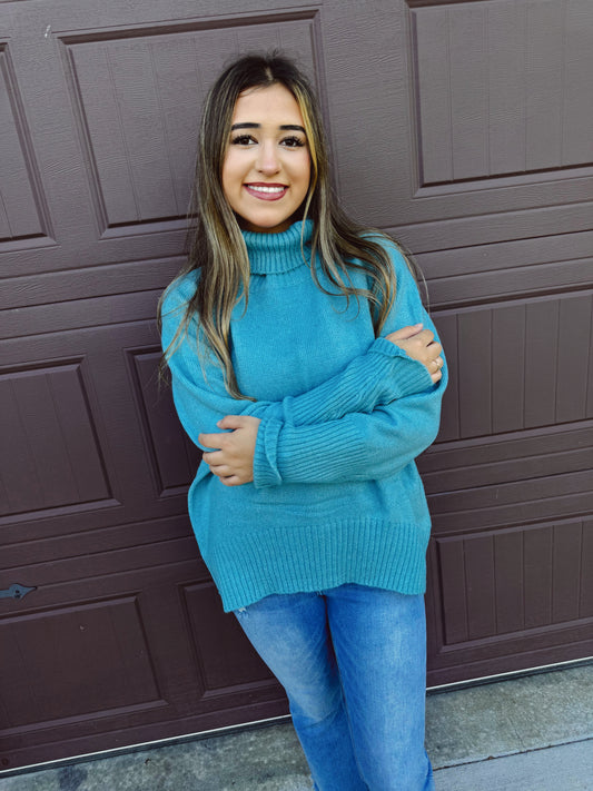 Pumpkin Patch Cozy Turtleneck Sweater - Sky