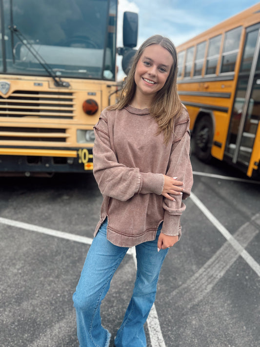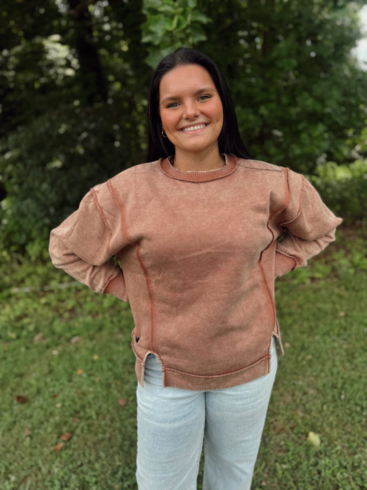 The Best Feeling Acid Wash Sweatshirt - Brown