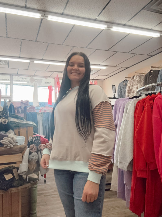 Blessed Embroidered Mock Neck Sweatshirt - Mint