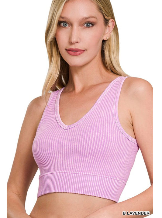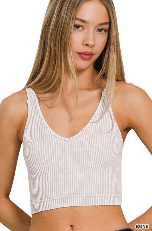 Washed Ribbed Cropped Seamless V-neck Brami - 6 Colors