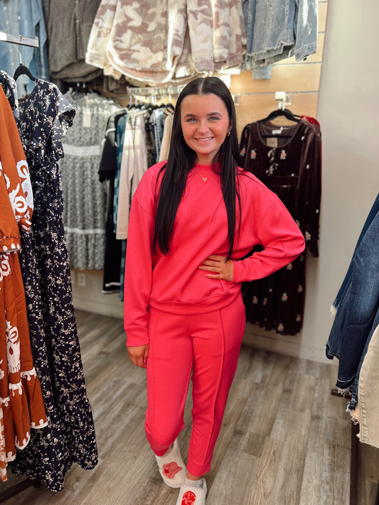 Cozy Up 2 Piece Sweatshirt Set - Ruby