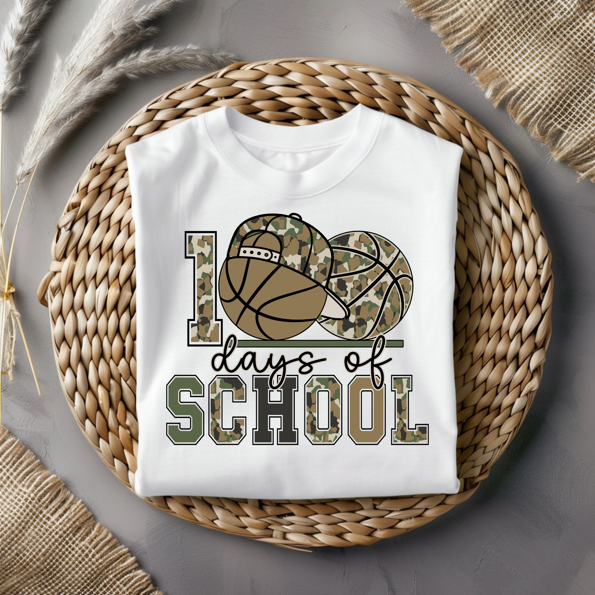 100 Days of School Basketball Camo Graphic Tee