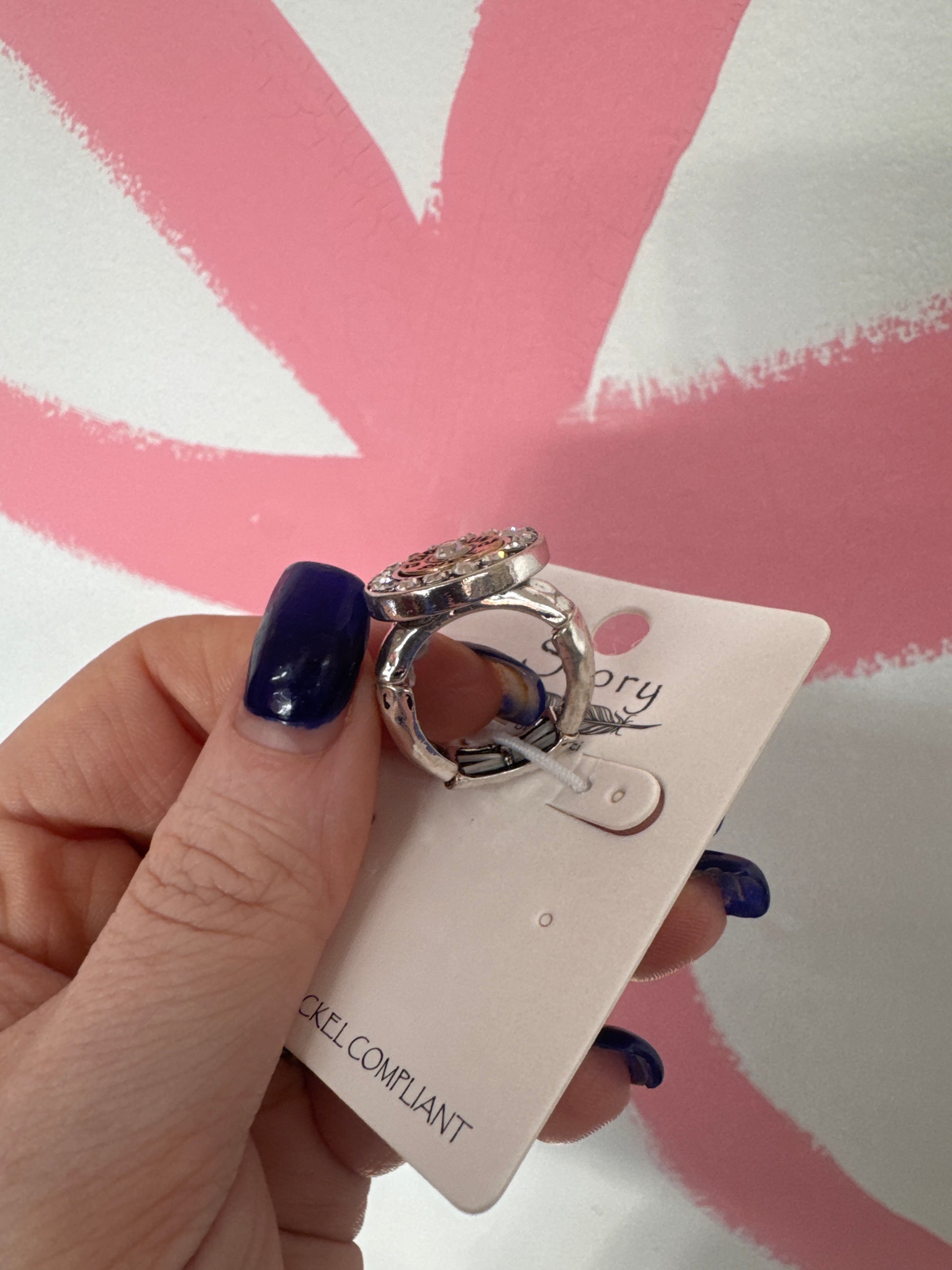 12 GA Shotgun Bullet Shell Rhinestone Stretch Ring - Silver