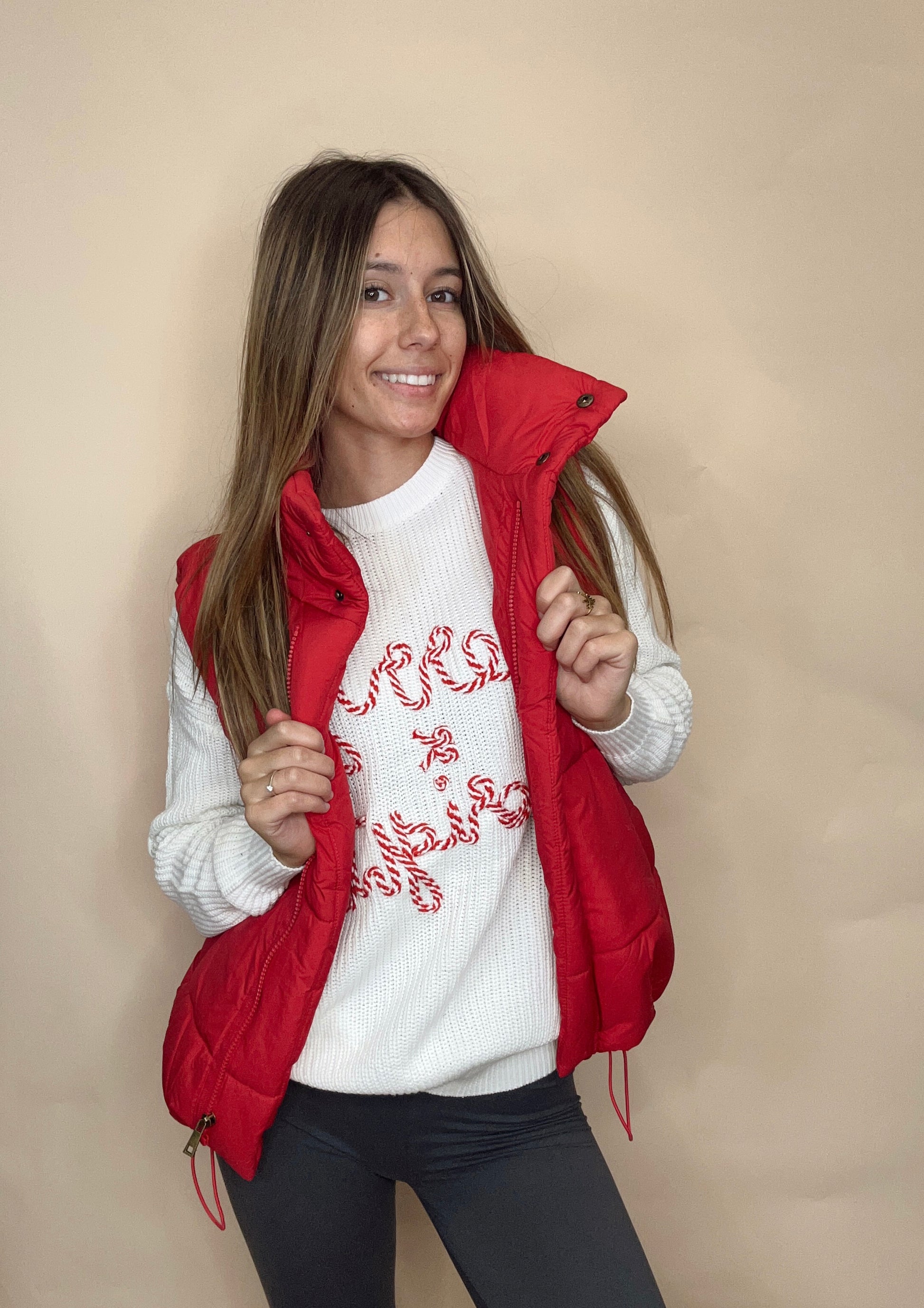 All Smiles Here Puffer Vest - Red