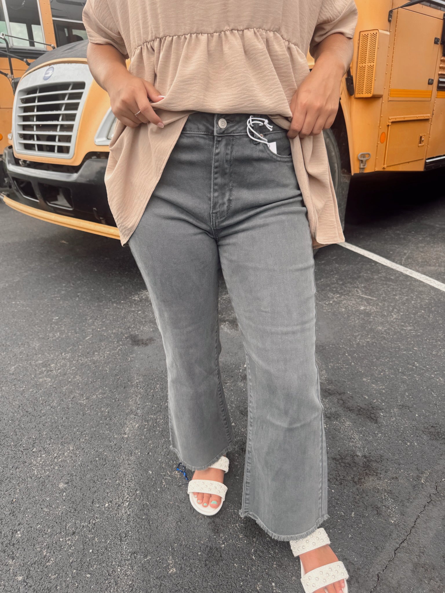 Becky Acid Wash Denim Cropped Jeans - Ash Black