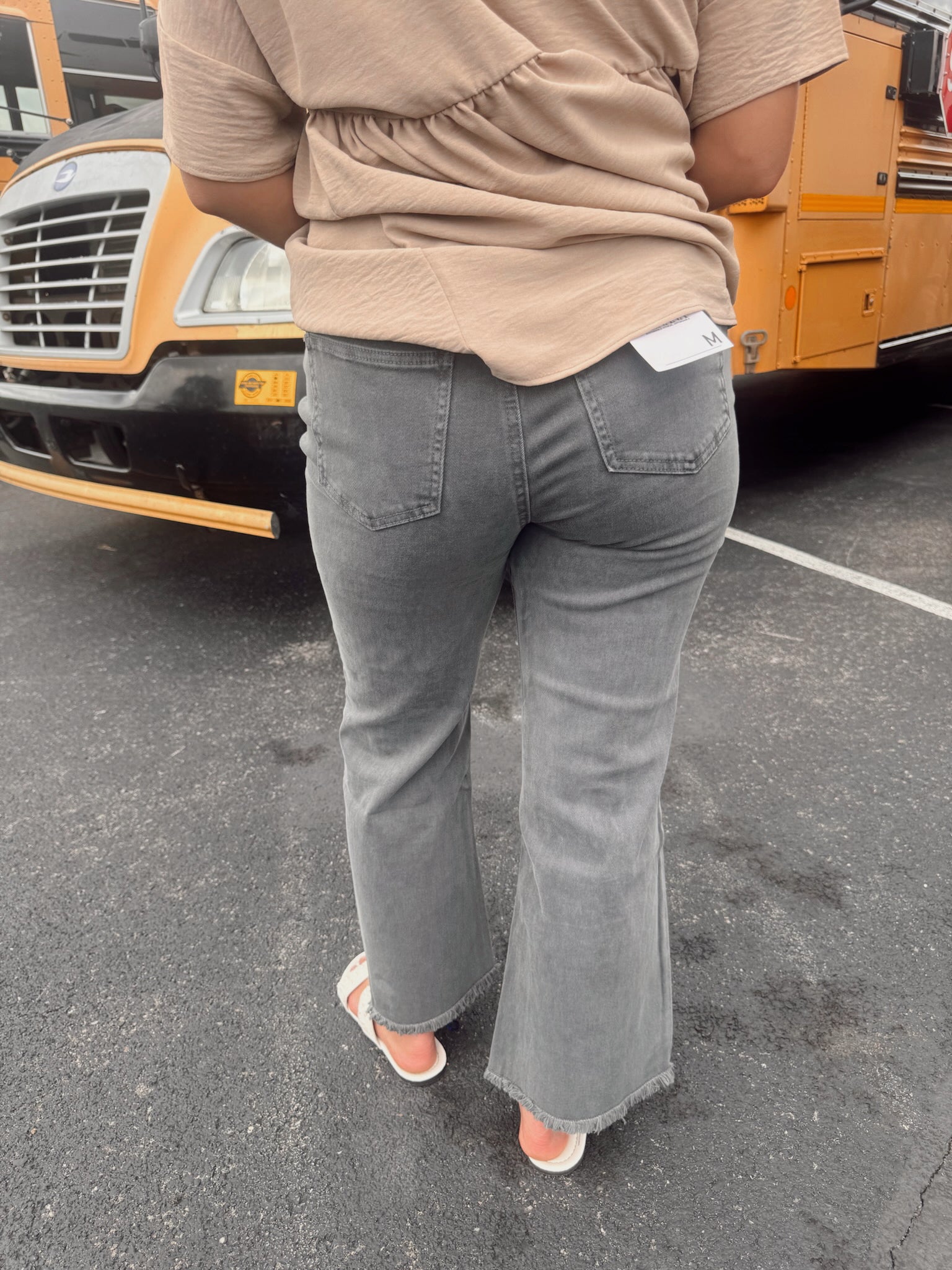 These Becky Acid Wash Denim Cropped Jeans feature a high waist and bootcut silhouette with a frayed hem for a distinctive look. Crafted with good stretch, they offer comfort and flexibility. Each pair is unique, showcasing subtle variations in color and finish. With a front rise of approximately 10.75 inches, a 27-inch inseam, and a 19.5-inch leg opening, these jeans combine style and fit for a flattering, modern silhouette.