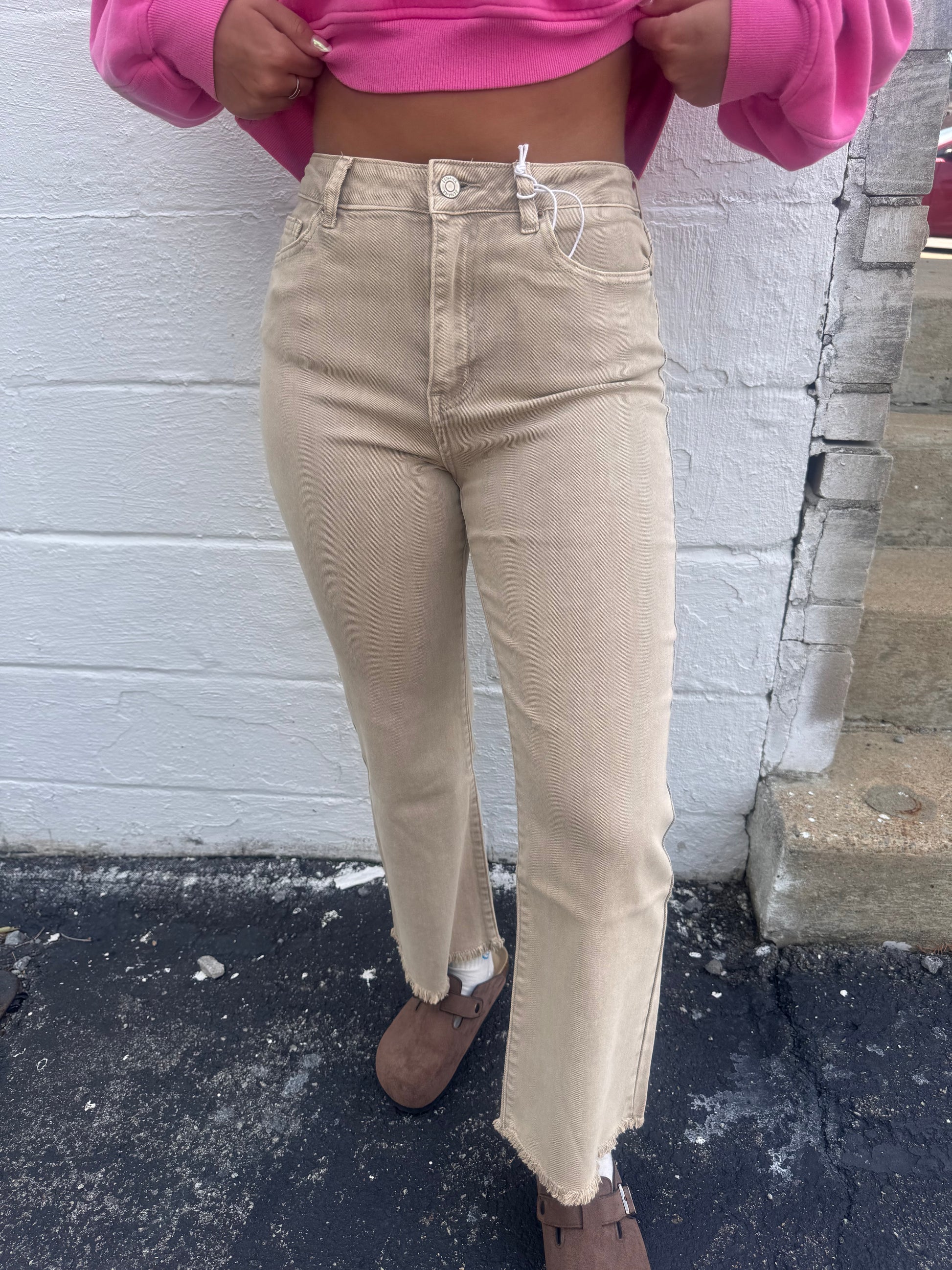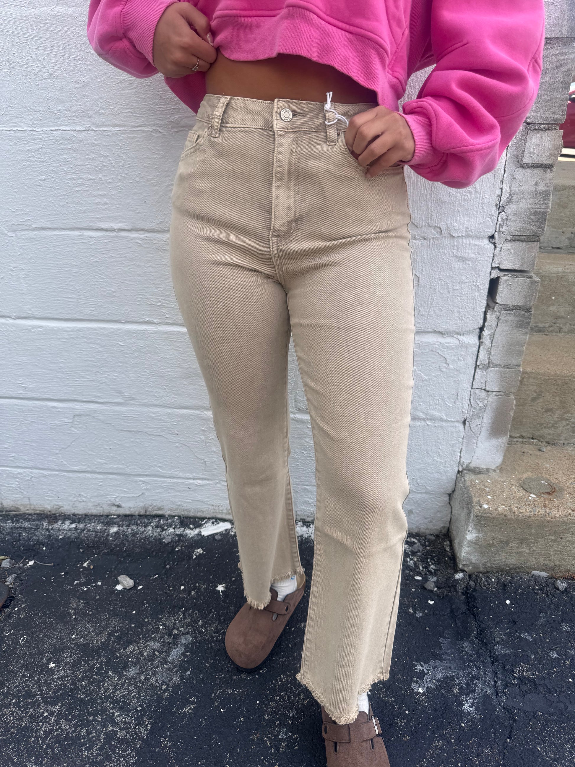 Becky Acid Wash Denim Cropped Jeans - Ash Mocha