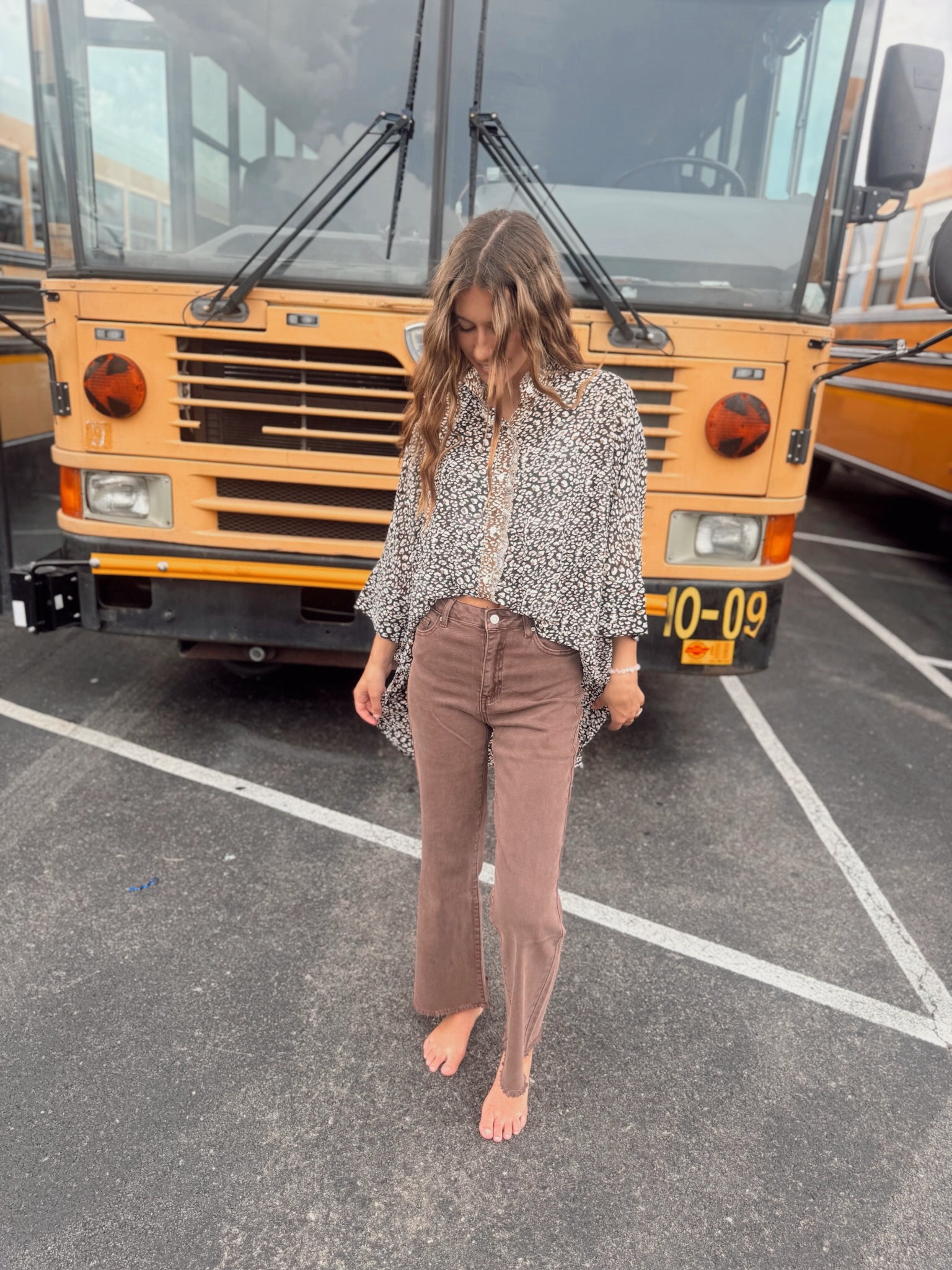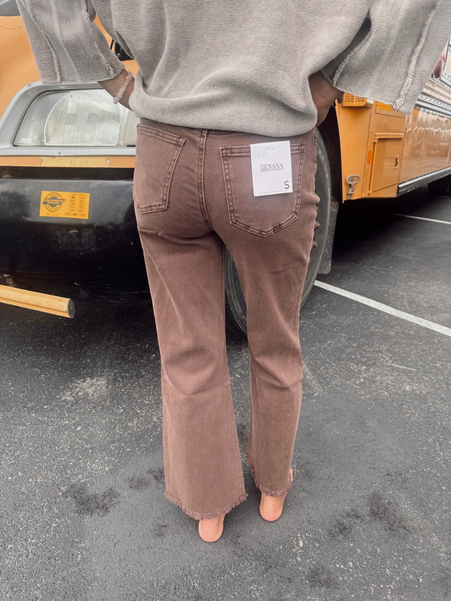 Becky Acid Wash Denim Cropped Jeans - Brown