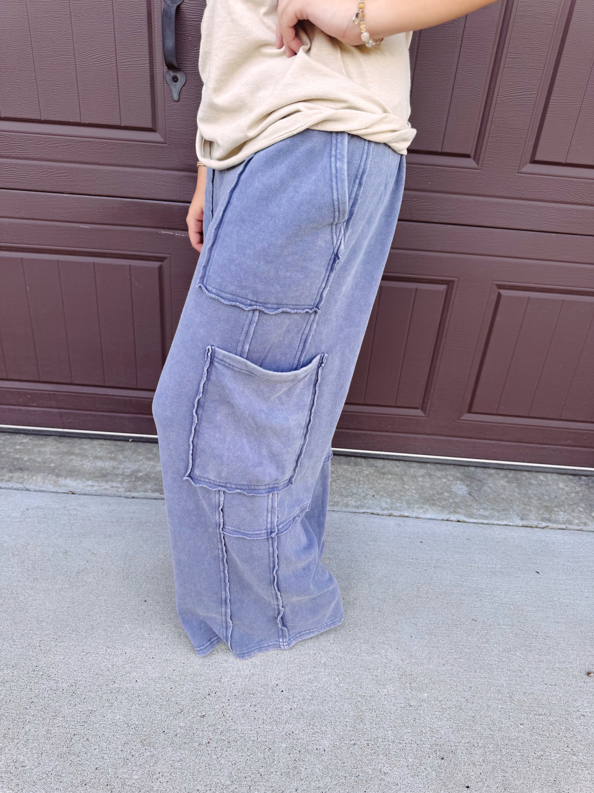 These Can’t Go Wrong Sweatpants blend comfort with versatile style. Crafted with a mineral wash finish, they feature roomy cargo pockets outlined with bold trim for a distinct look. Perfect for dressing up or down, they offer a relaxed fit that keeps you cozy without sacrificing fashion. Ideal for casual days or elevated streetwear ensembles.