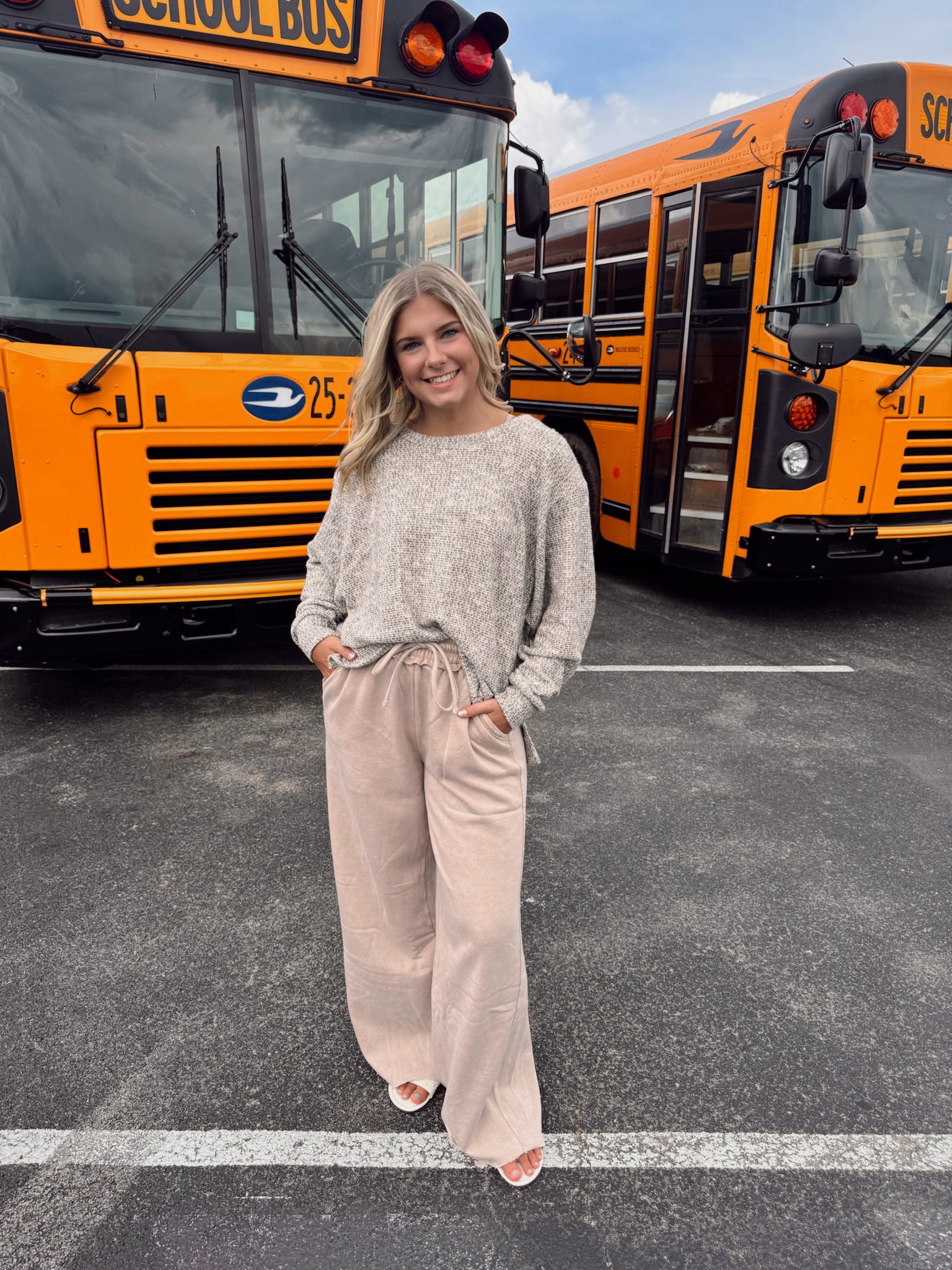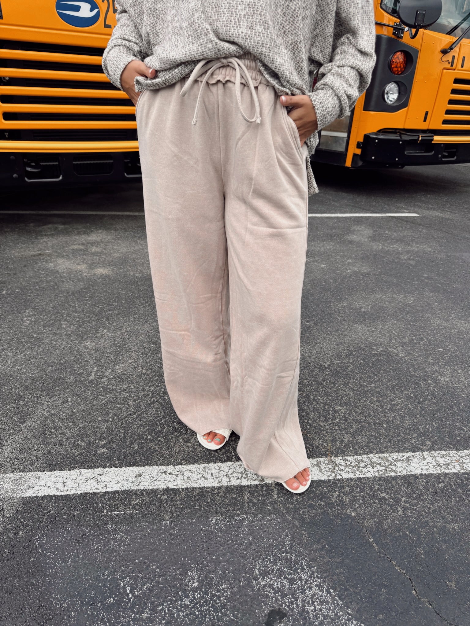ACID WASH FLEECE PALAZZO SWEATPANTS WITH POCKETS