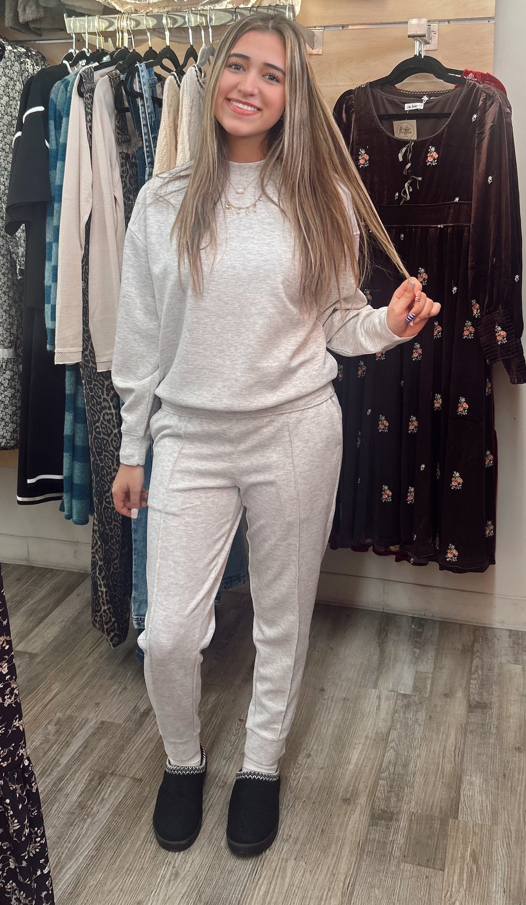 Cozy Up 2 Piece Sweatshirt Set - H. Grey