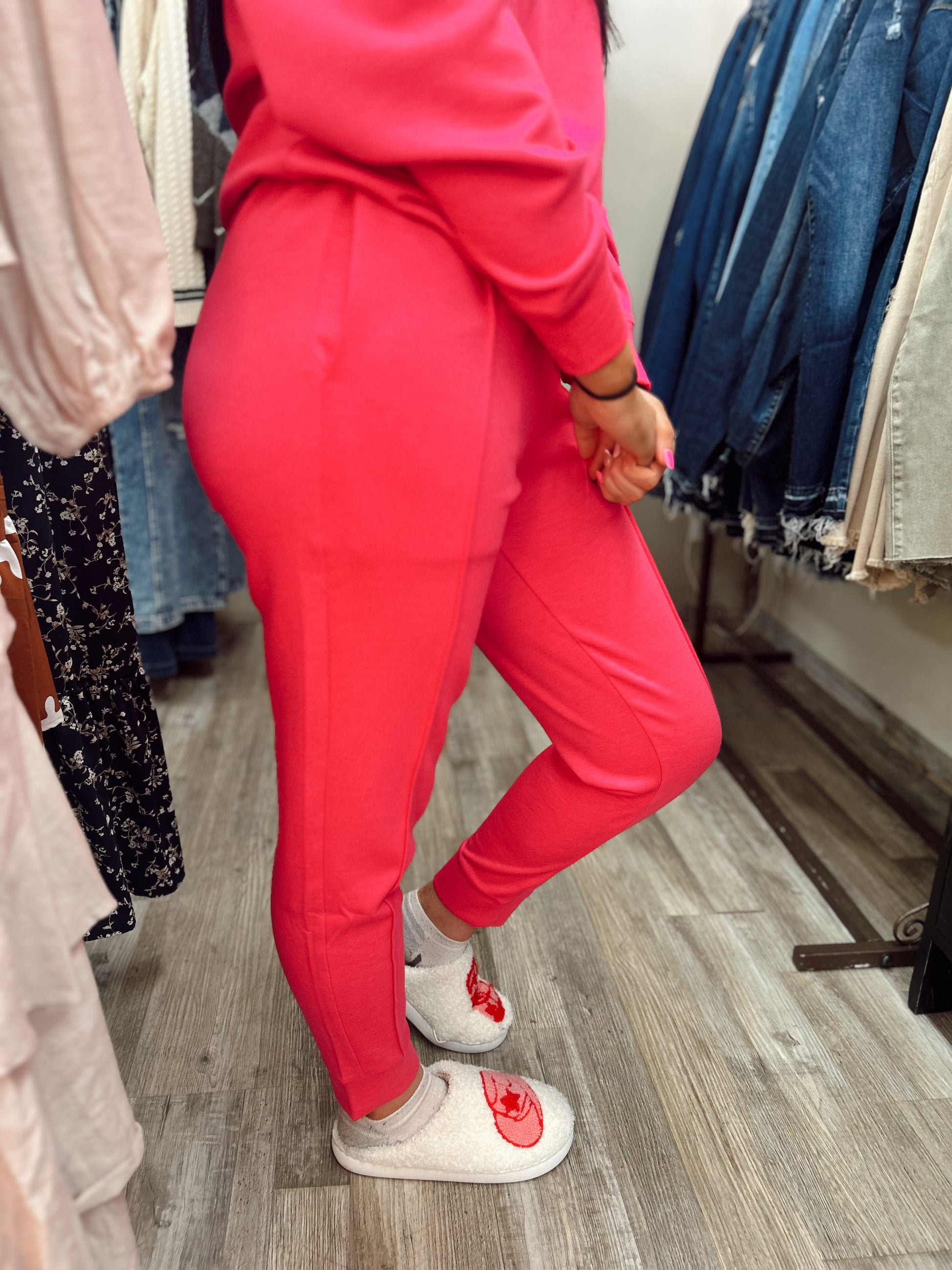 Cozy Up 2 Piece Sweatshirt Set - Hot Pink
