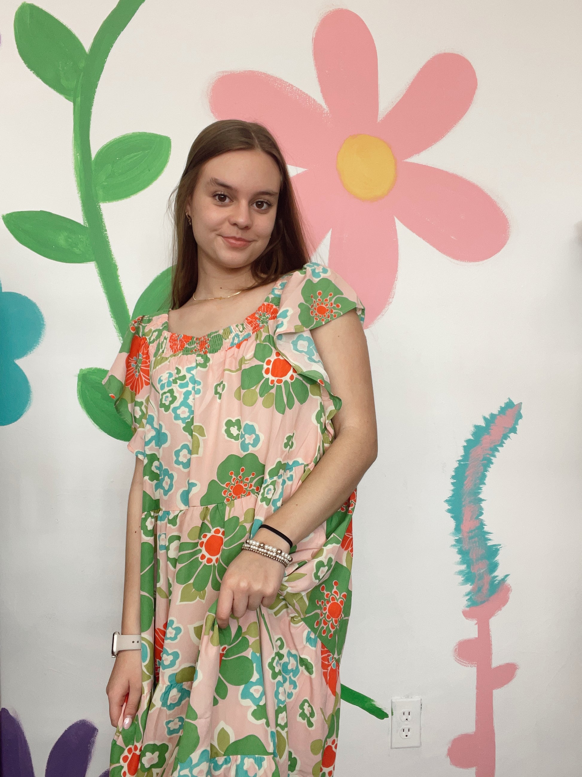 Live out your floral fantasies in our Flower Shop Dreams midi dress. With a lovely pastel palette and charming floral pattern, this dress is perfect for any occasion. Bring some whimsy and elegance to your wardrobe with this pretty piece!