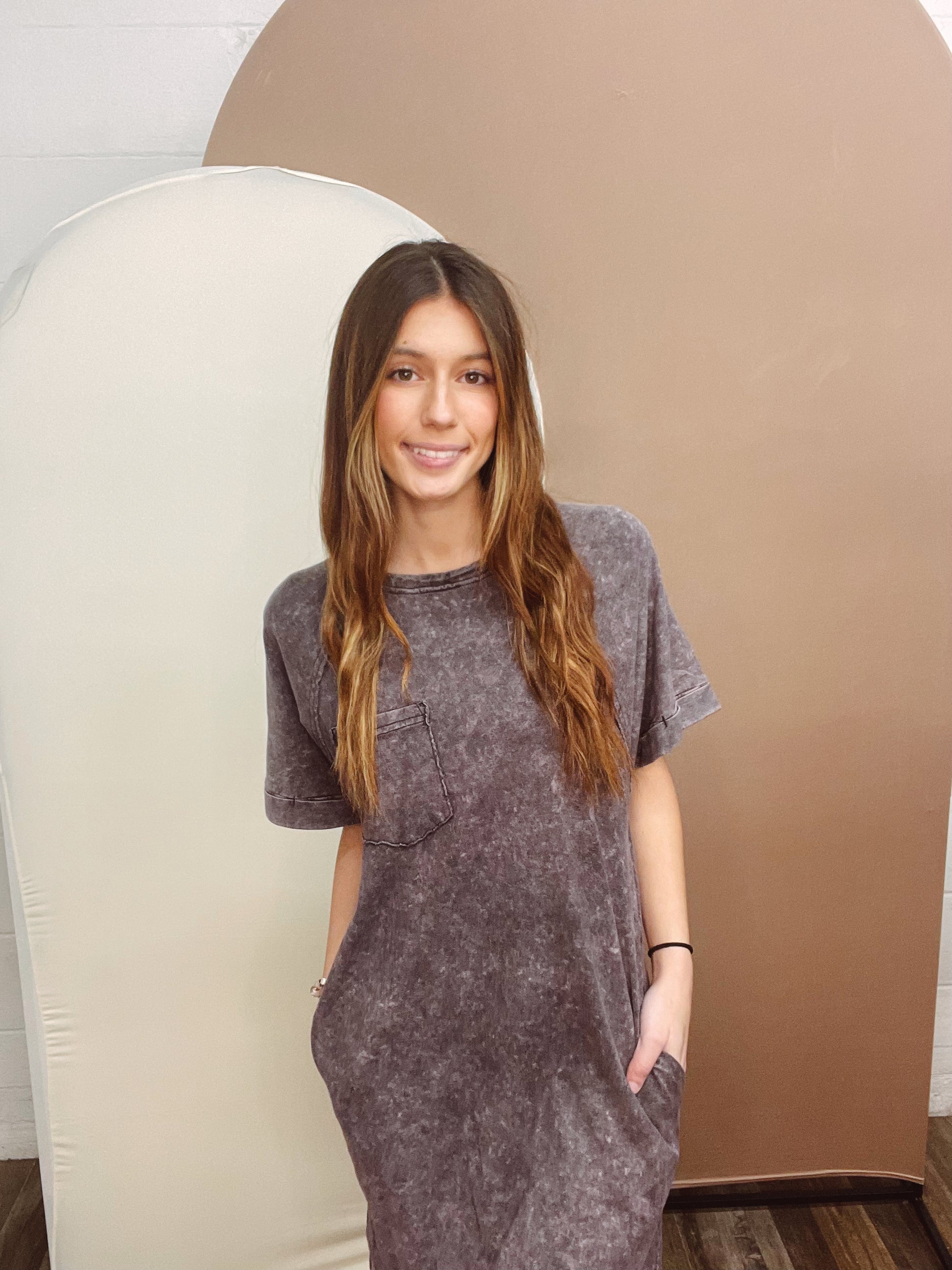 Feel free to embrace your unique style with our Happiness is You Acid Wash Dress - Black. This mineral washed oversize dress is the perfect blend of comfort and edgy fashion. Unleash your inner cool with this playful dress!