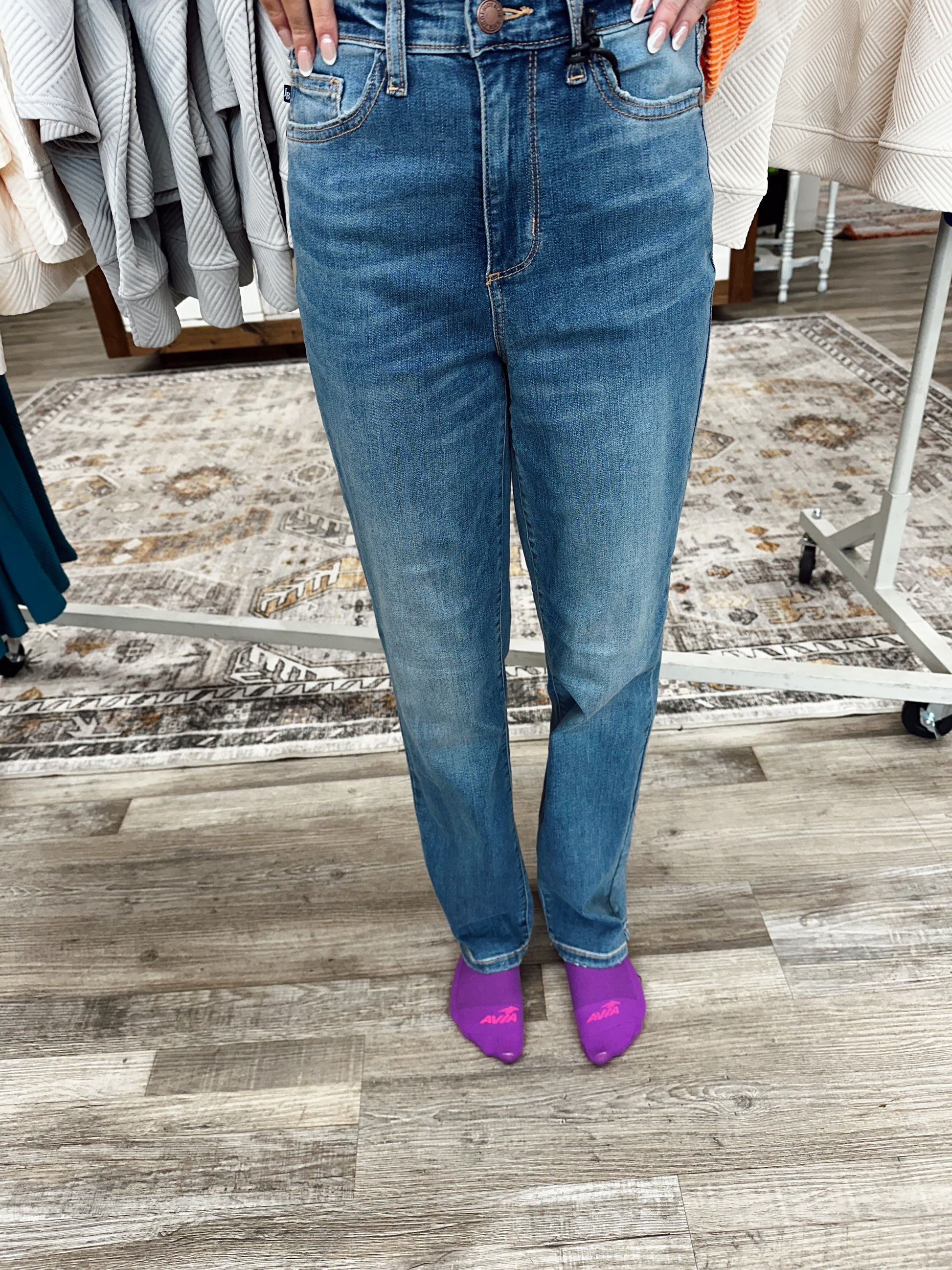 Unleash your inner flare with our Jaydin High Waist Tummy Control Flares! These medium wash jeans feature a double hem for added style and control, making you feel confident and comfortable all day long. Say goodbye to boring jeans and hello to a unique and chic look!
