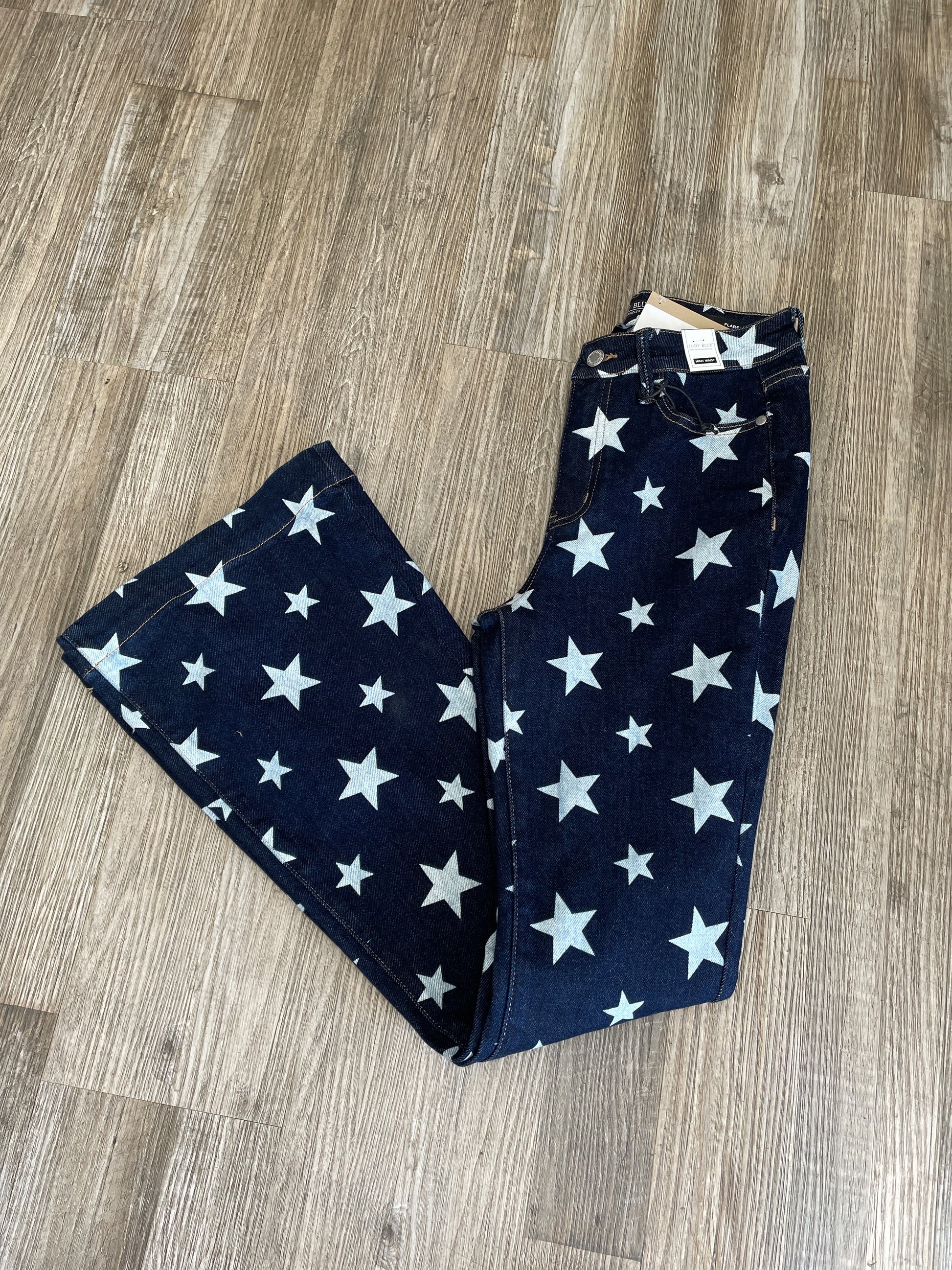 Unleash your inner star power with Kayla's Star Flare Jeans! These trendy flare jeans feature a star print that will make you stand out in any crowd. Rock these jeans for a playful and stylish look that is sure to make a statement.