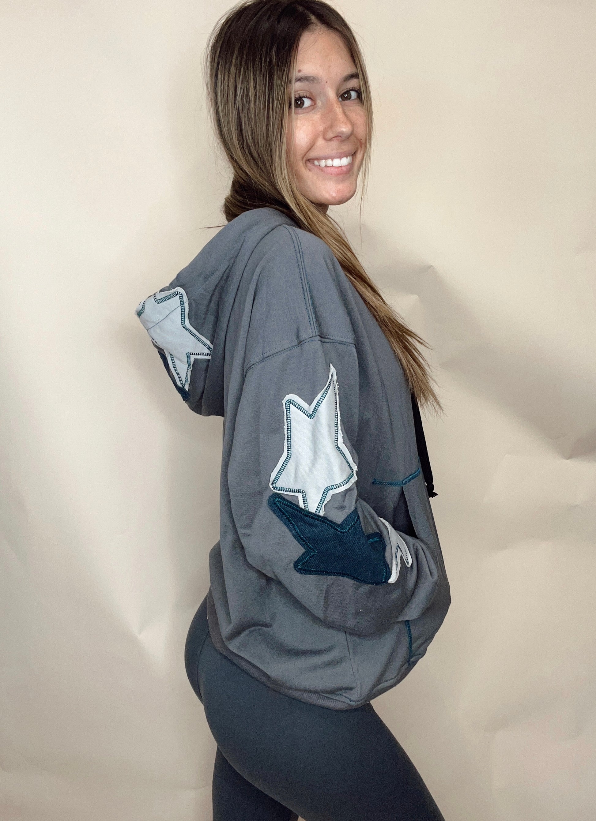 The Lazy Day Star Hoodie combines vintage charm with contemporary comfort. Featuring a distinctive carbon grey star patchwork design accented by contrast stitching, this piece delivers visual interest with understated sophistication. The mineral wash treatment creates an authentically worn-in aesthetic, while the kangaroo pocket provides practical storage for everyday essentials. Crafted for those who appreciate quality construction and timeless style, this hoodie transitions seamlessly from casual lounging to weekend outings. An investment piece that rewards repeated wear.