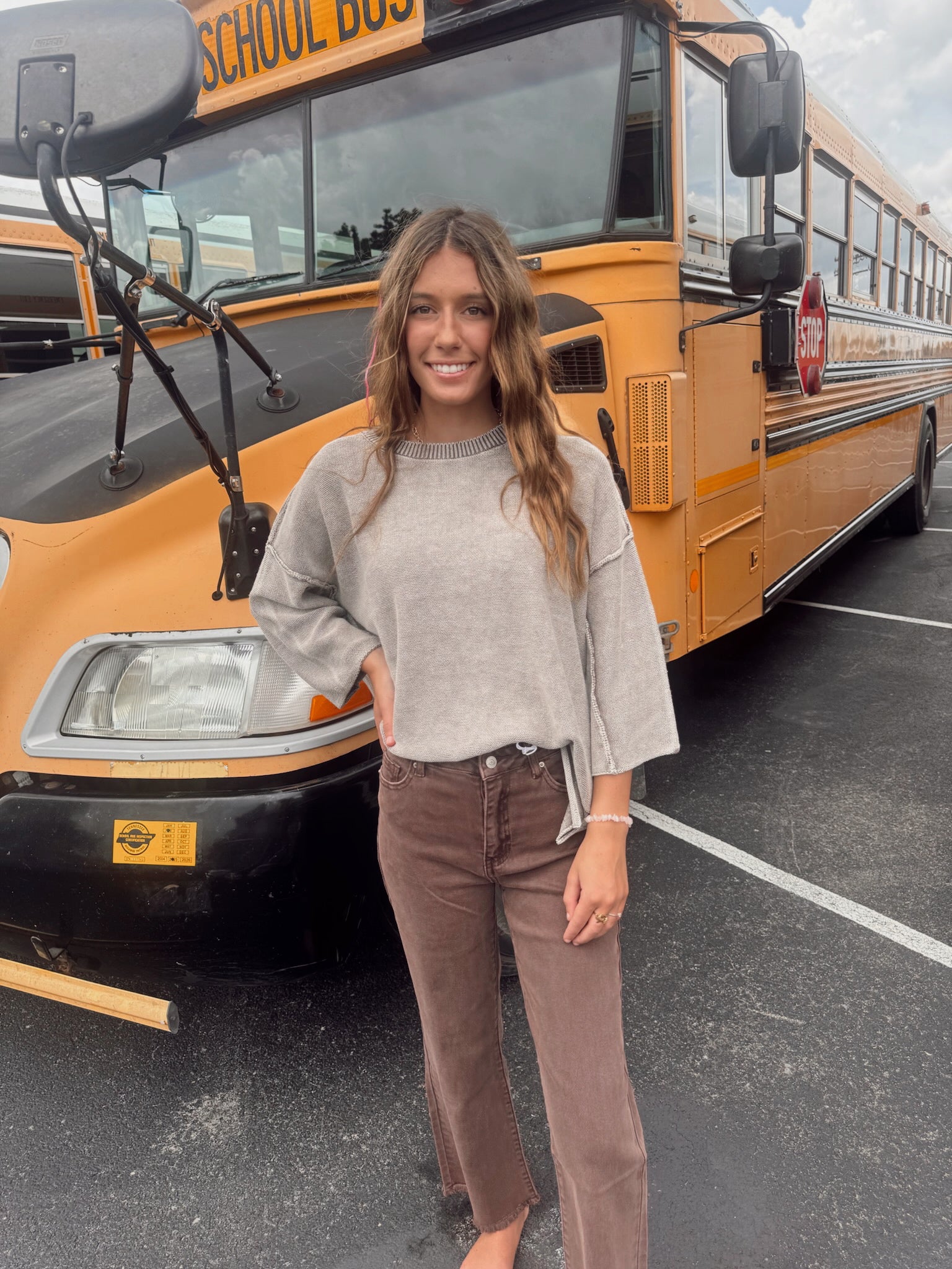 WASHED 3/4 SLEEVE BOXY SWEATER