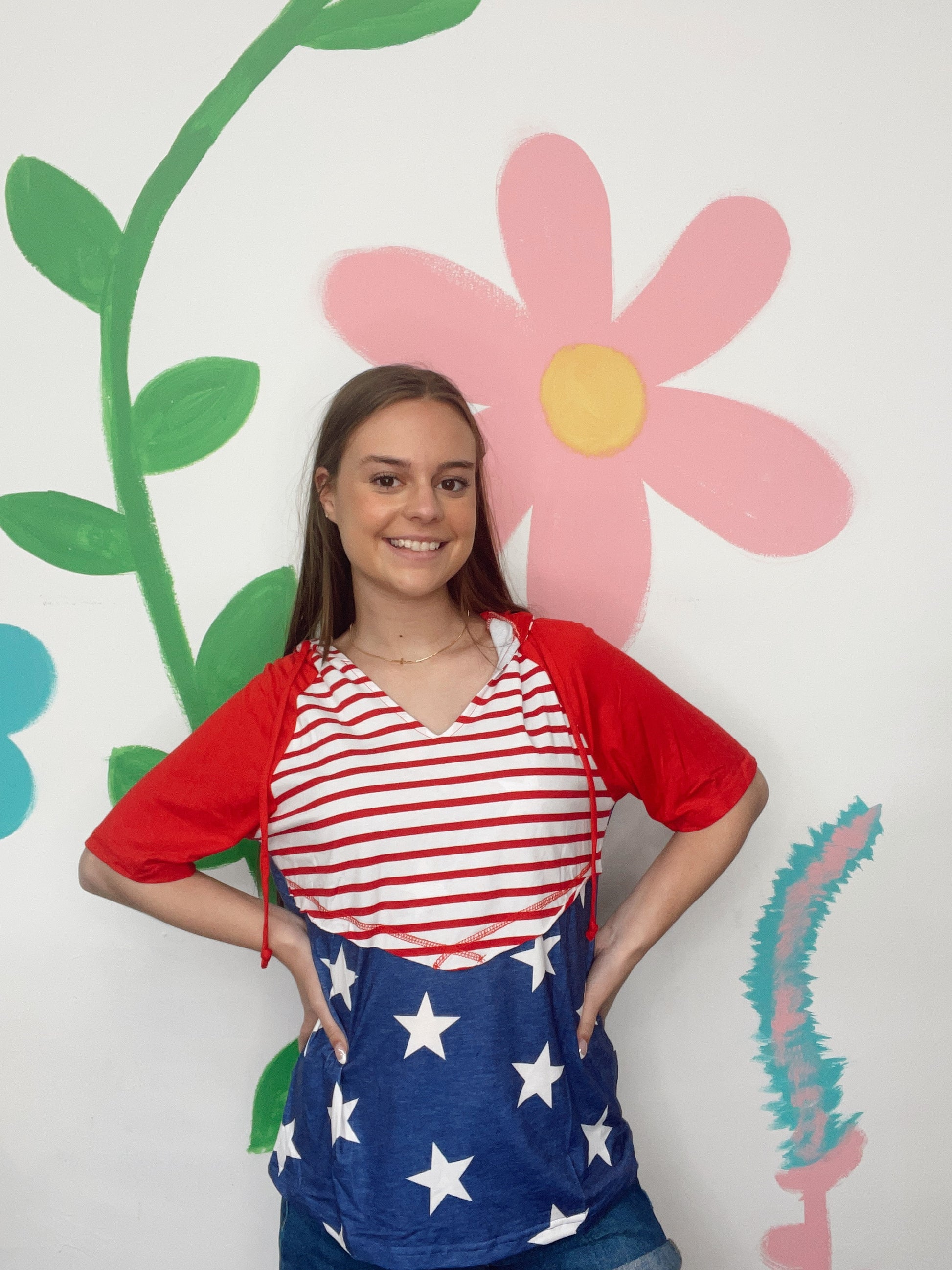 Celebrate your love for the USA with this stylish hooded top. Perfect for all the patriotic holidays, this hoodie features stars and stripes that will make you stand out in any crowd. Show off your American pride in a fun and playful way with this must-have top!