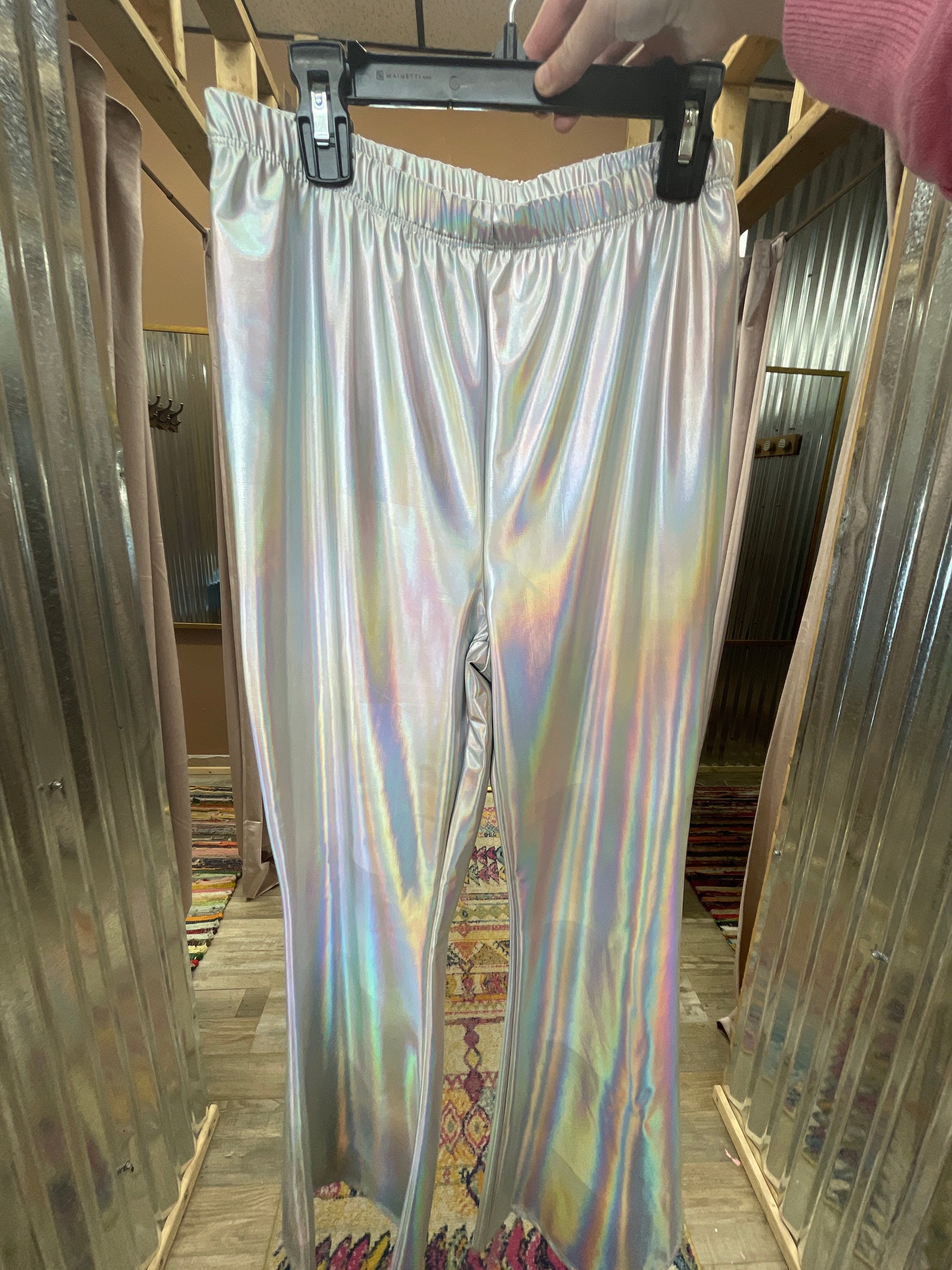 Loving on you metallic pleather flared leggings
