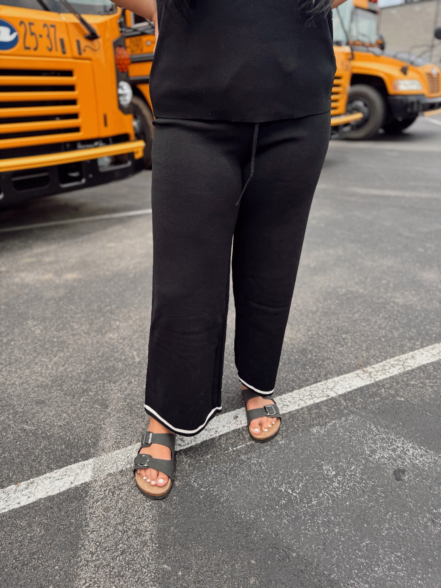 Elevate your casual wardrobe with the Lowkey Luxe 2 Piece Set, featuring a black contrast trim half-sleeve top paired with loose drawstring pants. This ensemble combines comfort and style effortlessly, offering a relaxed fit ideal for everyday wear. The contrast trim adds a subtle yet sophisticated detail, while the adjustable drawstring ensures a personalized fit. Perfect for lounging or casual outings, this set delivers understated luxury with practical ease.