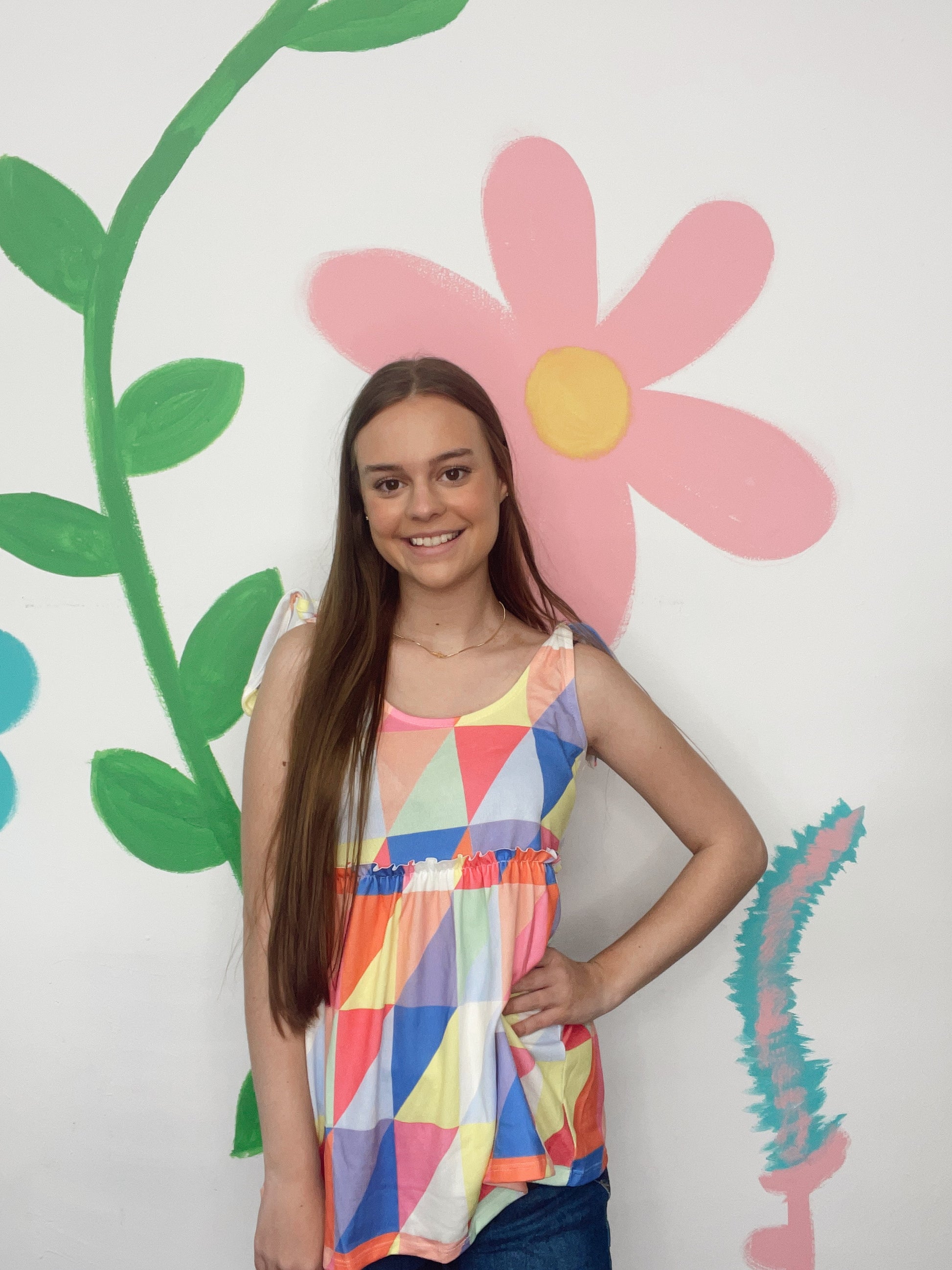 Make a statement in our My Last Wish Tank Top. This multicolor block printed top features a soft brushed knit and unique tied ribbon shoulder detail, adding a touch of shimmer to your look. Perfect for any occasion, this tank top will be your last wish come true.