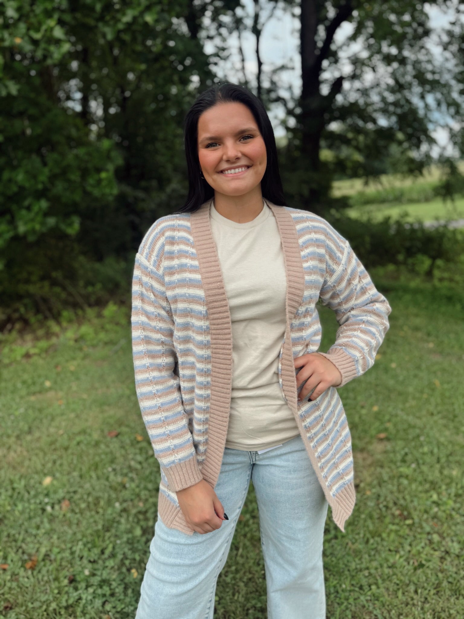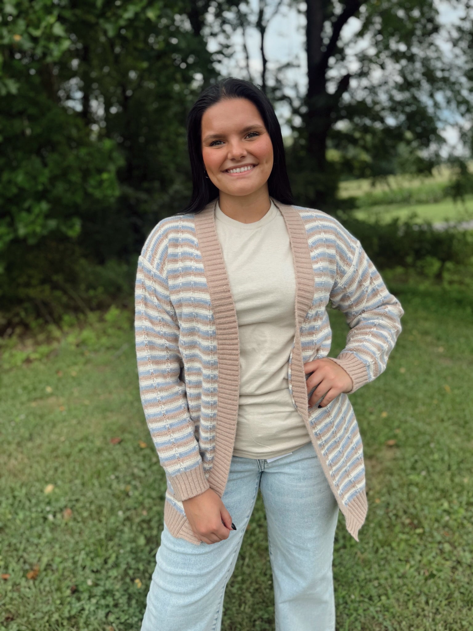 The Never Fear Cardigan features a vibrant multi-colored stripe design that adds a dynamic touch to any outfit. Crafted for comfort and style, this cardigan offers a versatile layering option suitable for various occasions. Its expert construction ensures durability and a flattering fit, making it a reliable choice for those seeking both fashion and function in their wardrobe.