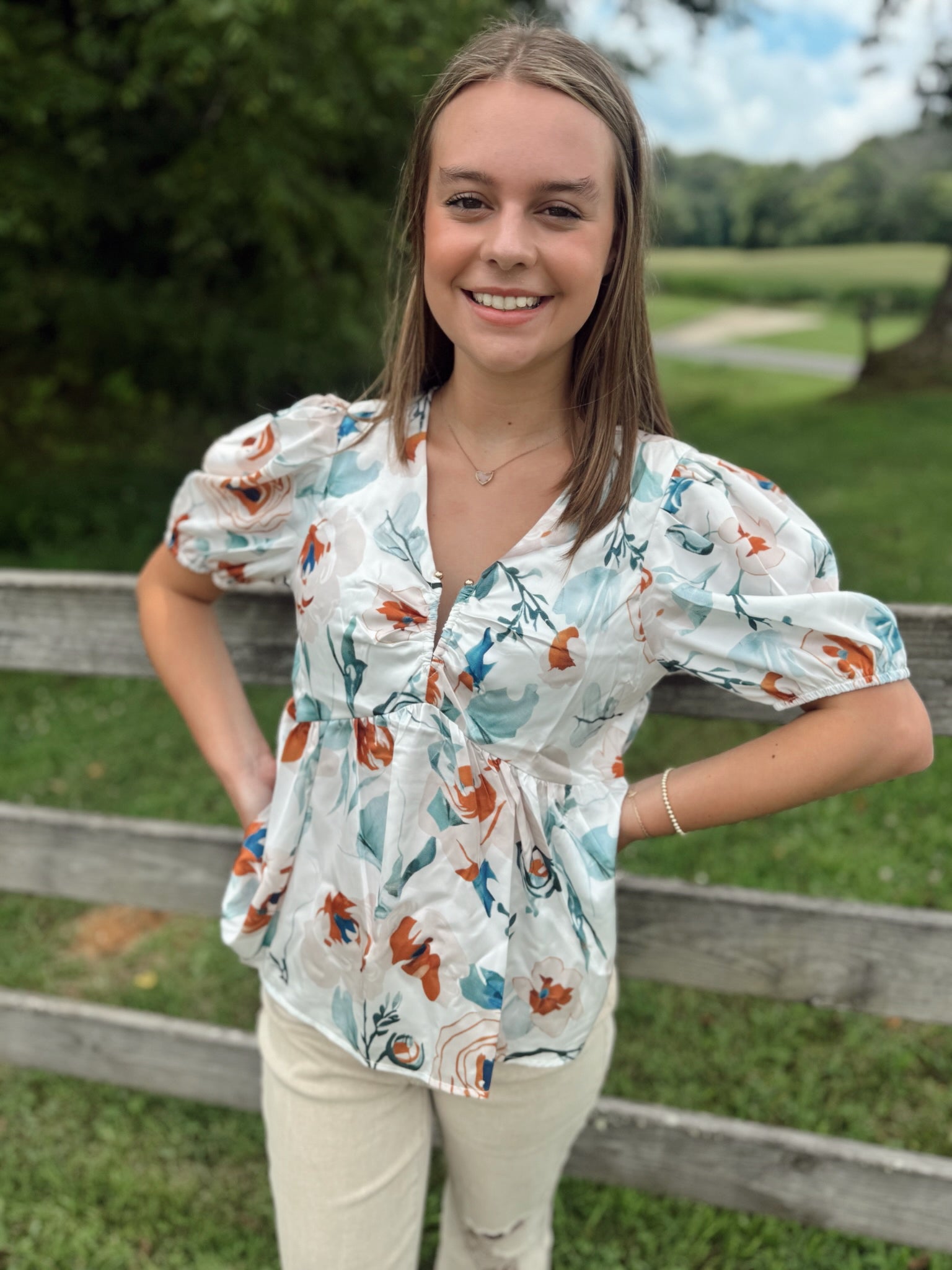 Elevate your wardrobe with the No Apologies Floral Top, featuring delicate white fabric adorned with a subtle floral pattern. Its puff sleeves add a refined volume, balancing classic femininity with modern style. This top offers a sophisticated silhouette perfect for both casual and dressier occasions, ensuring you make a confident statement wherever you go.