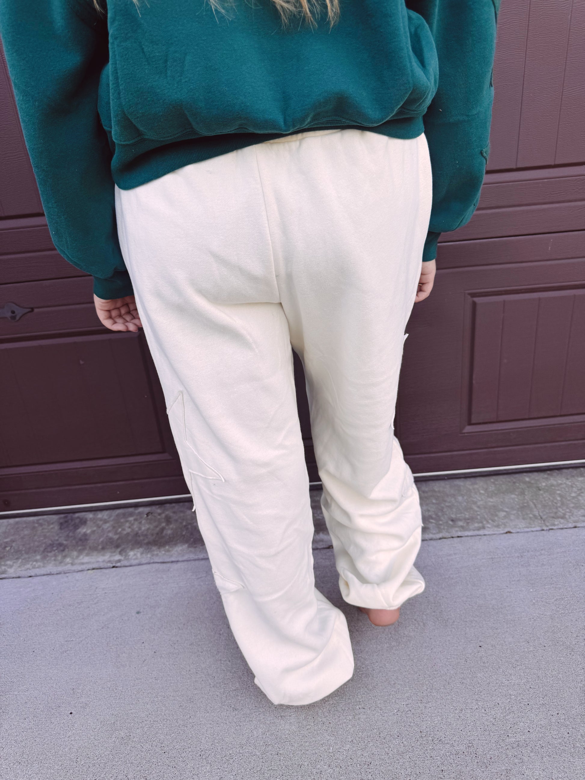 Crafted in a cozy cream fabric, the North Star Sweatpants feature sleek monochrome star appliques that add subtle flair. Designed for a perfect match with our Star of the Show collection, these sweatpants combine comfort and style effortlessly, making them an essential piece for a coordinated and polished look.