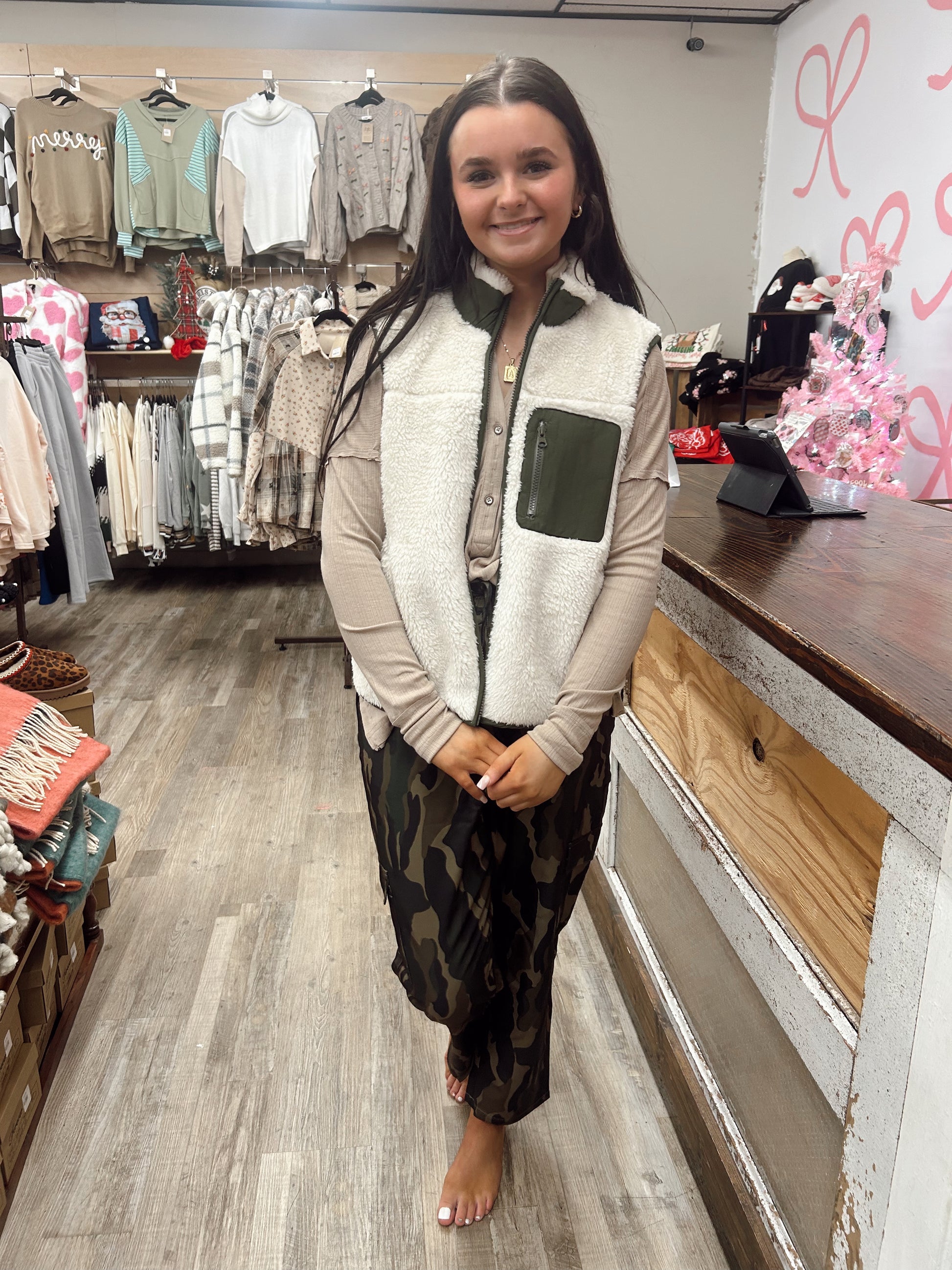 The Old Roads Sherpa Vest combines cozy comfort with effortless style. Crafted entirely from plush faux shearling, this relaxed-fit vest features a convenient front zipper, functional chest pocket, and stand-up collar for added warmth. The fully lined interior ensures lasting comfort through layering, while the loose silhouette makes it perfect for casual everyday wear. A versatile seasonal essential that transitions seamlessly from fall through winter.
