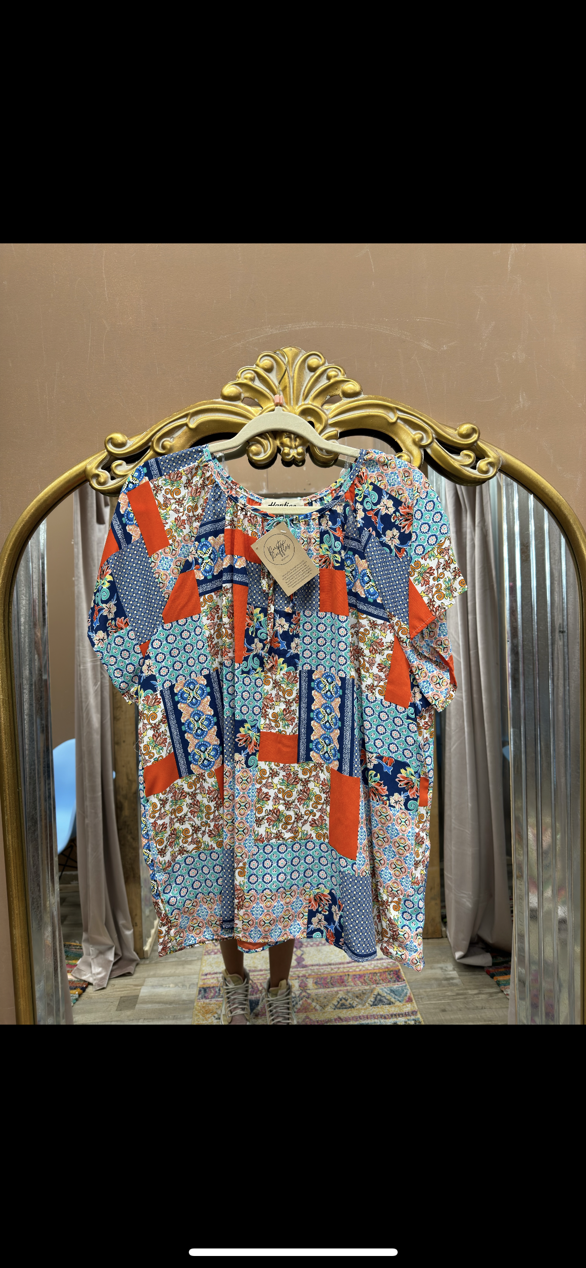 Be the free-spirited queen with our "Queen Of My Heart" top! This plus size bohemian patchwork floral top will elevate your style and make you stand out in any crowd. Embrace your inner boho beauty with this unique and playful top.