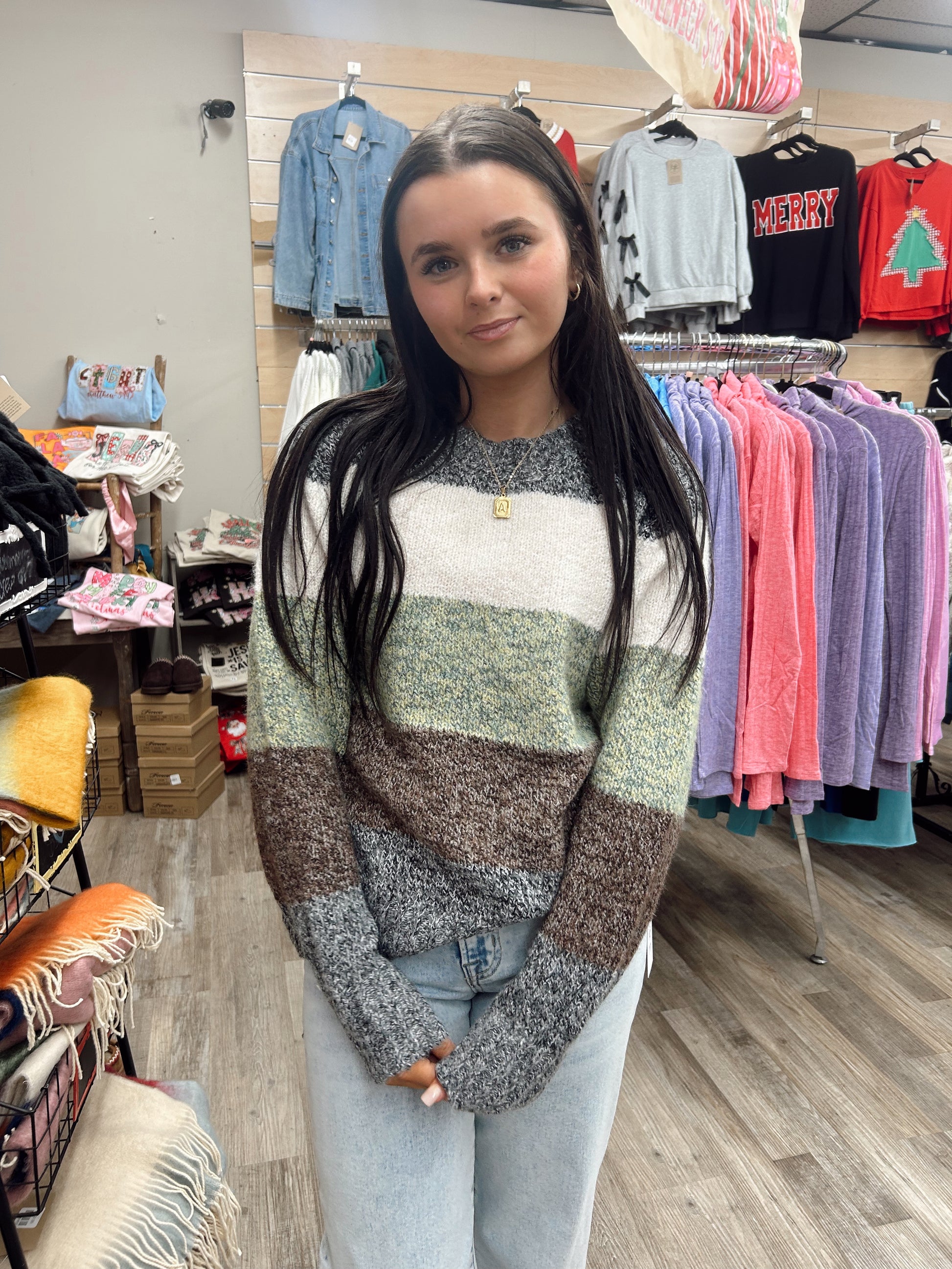 The Safe Haven Striped Sweater combines comfort with contemporary style through its distinctive multi-stripe color blocking and luxuriously soft fuzzy knit construction. Wide, textured stripes in harmonious tones create visual interest while the plush fabric delivers exceptional warmth without bulk. The relaxed silhouette accommodates various body types and layering preferences, making it equally suited for casual outings or cozy evenings indoors. This versatile piece transitions seamlessly from season to season, serving as a reliable foundation for countless outfit combinations. Ideal for those seeking quality knitwear that balances aesthetic appeal with everyday w
