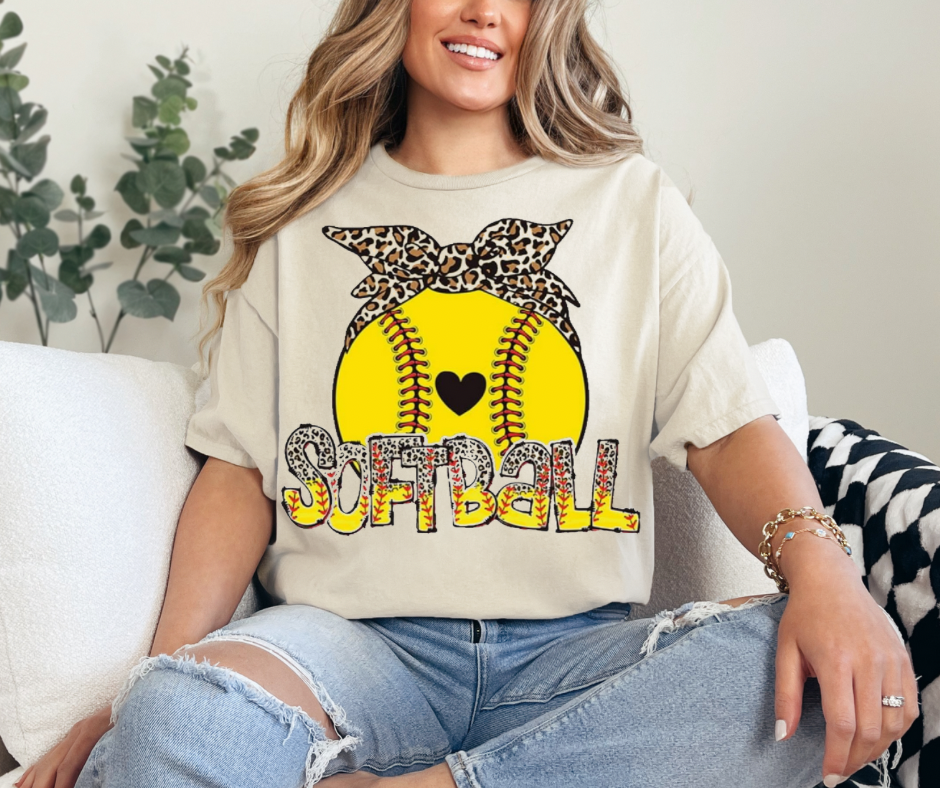 Softball Cheetah Bow Graphic Tee - Adult