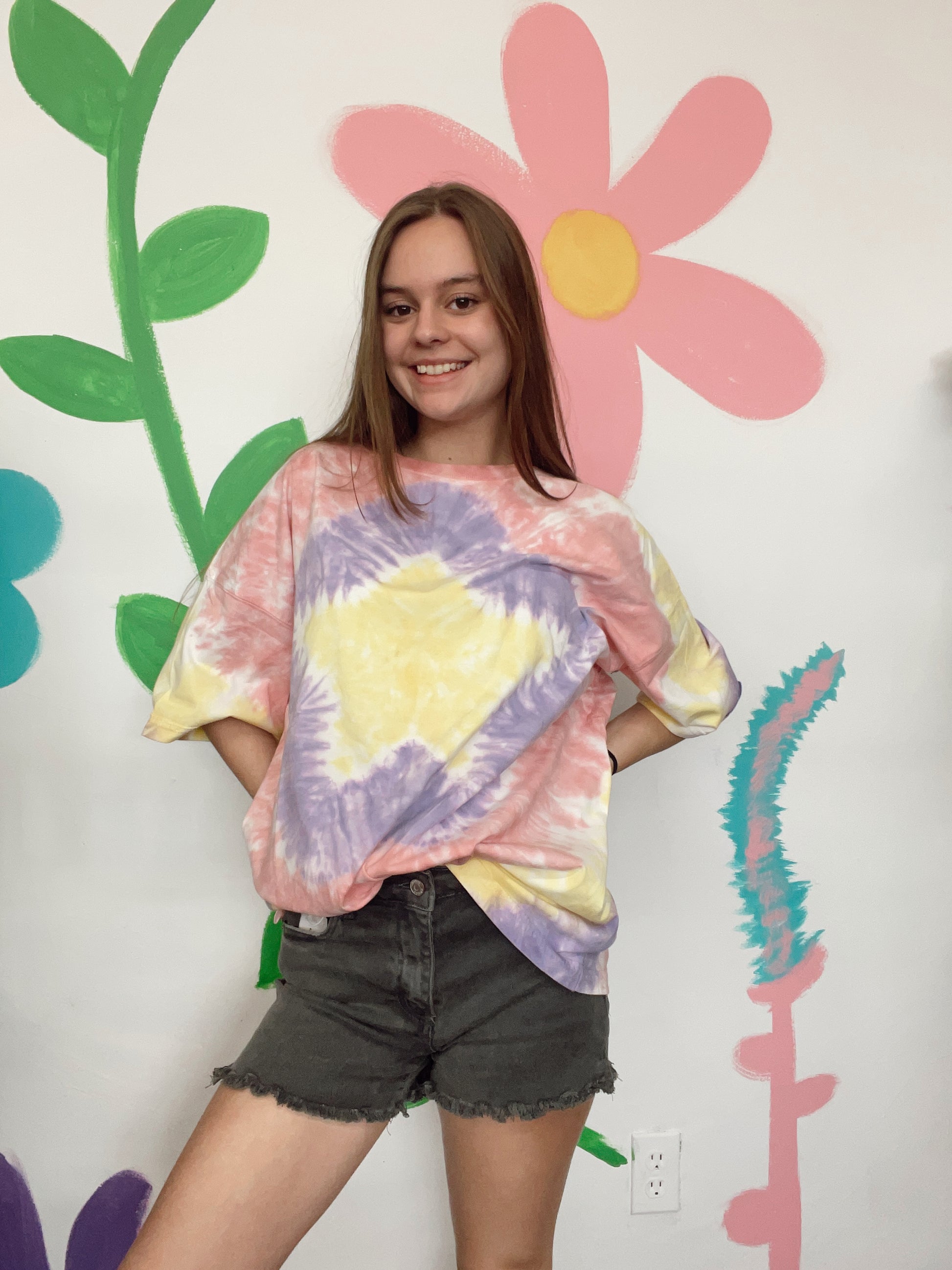 Get ready to shine bright with our Star Tie Dye Oversize Top in Cocoa! This trendy top features a unique tie dye pattern with a bold star in the center. Perfect for making a statement and standing out from the crowd. Comfortable, oversized fit for all-day wear. Add some cosmic vibes to your wardrobe today!