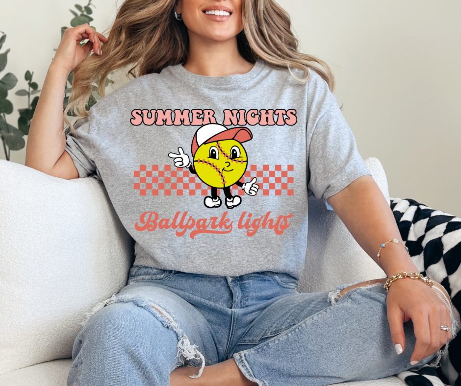 Summer Nights Ballpark Lights Graphic Tee - Adult