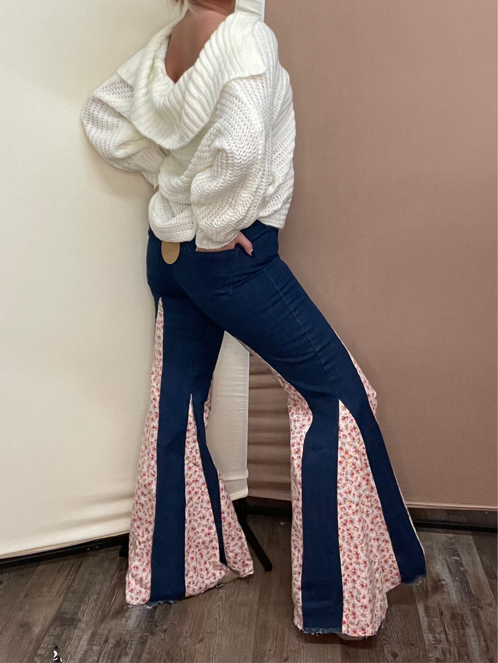 Get ready to stand out from the crowd with our one-of-a-kind Floral Patchwork Bell Bottoms! Featuring a unique design with slits to show off the beautiful floral print down the legs, these pants are sure to turn heads. Embrace your fun and quirky side with The One For Me bell bottoms.