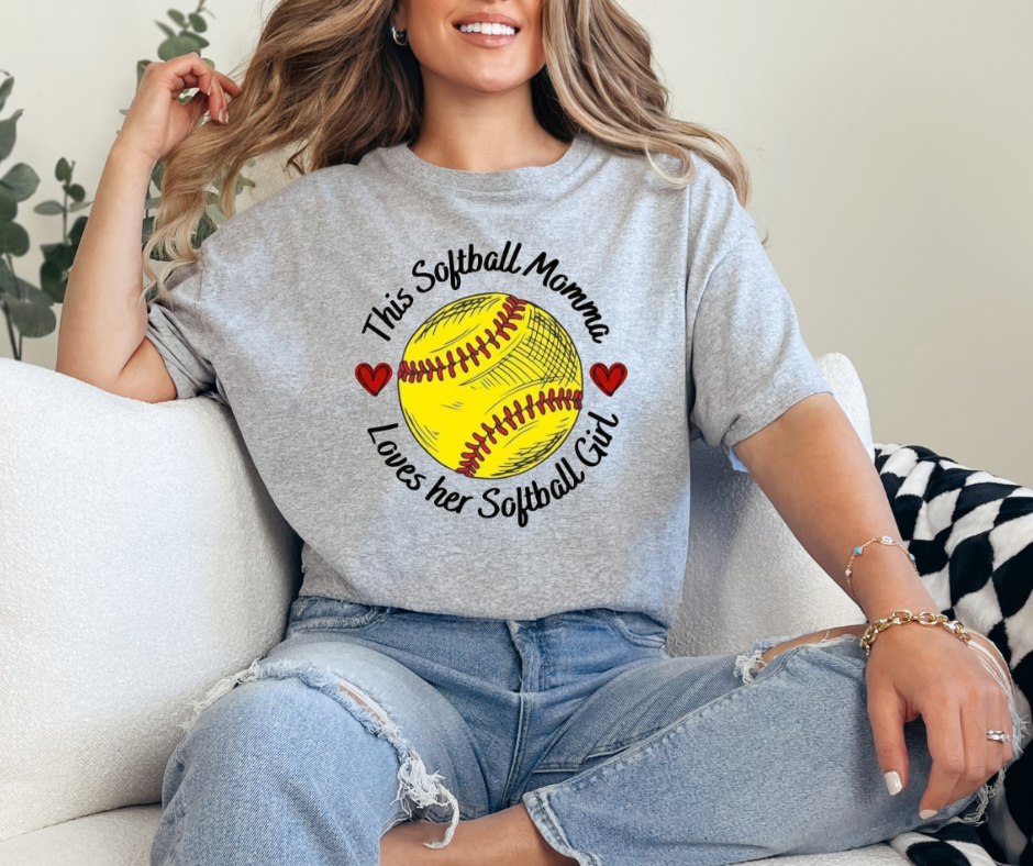 This Softball Momma Loves Her Softball Girl Graphic Tee - Adult