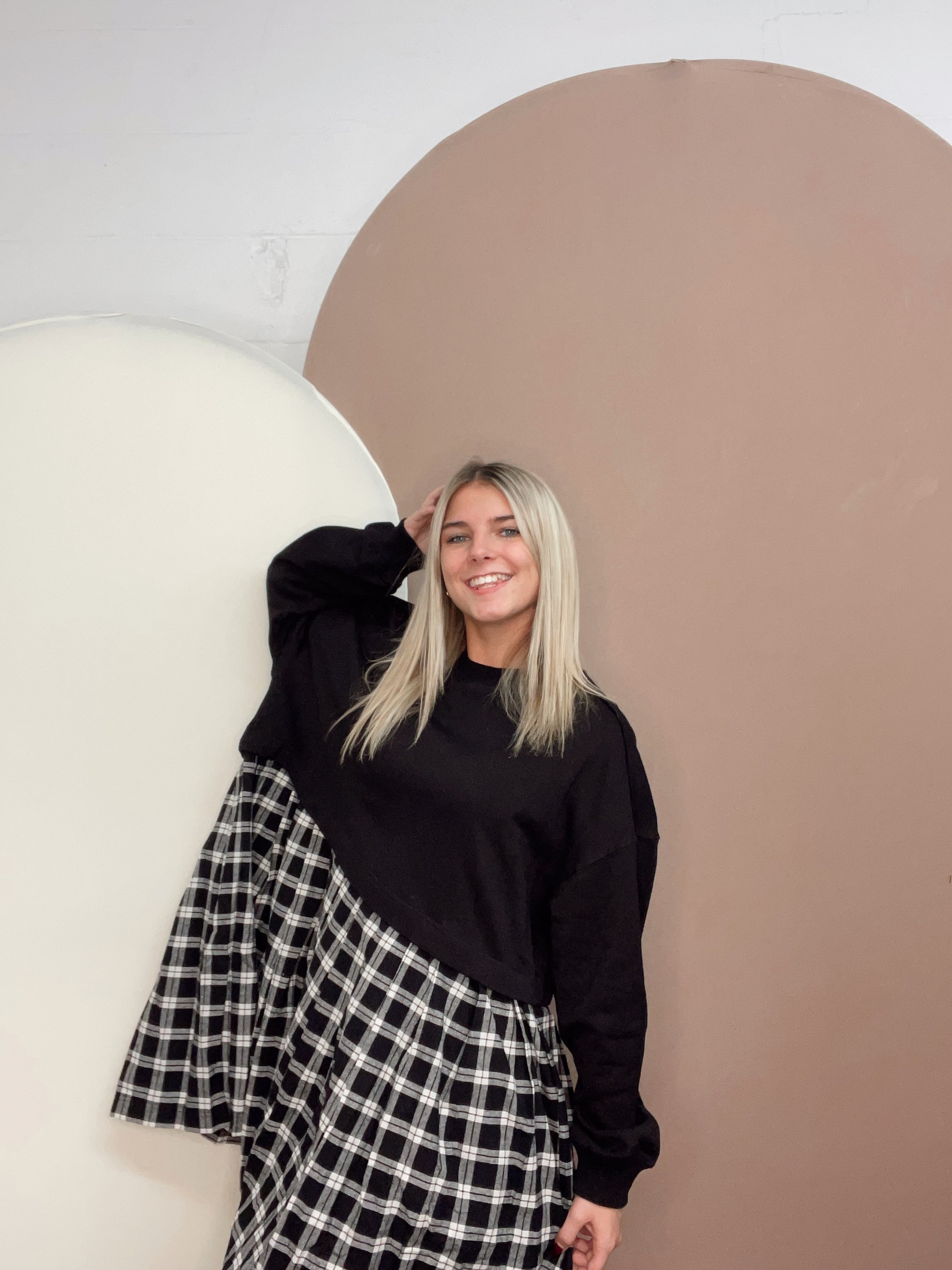 Warm up your look with this playful pleated plaid skirt. With its charming pattern and flared design, this skirt will bring a touch of whimsy to any outfit. Perfect for winter walks or cozy nights in (by the fire, with a cup of cocoa, and your favorite book).