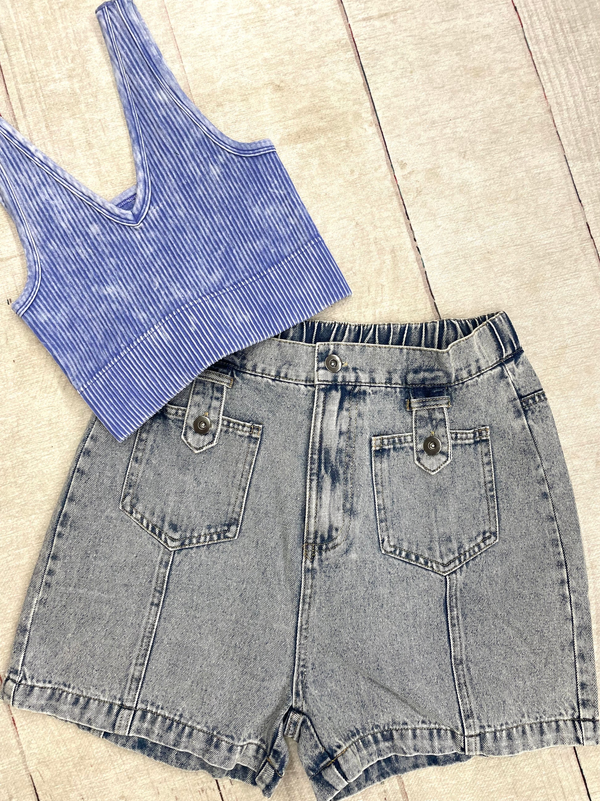Wrong Way High Waisted Jean Shorts - Indigo